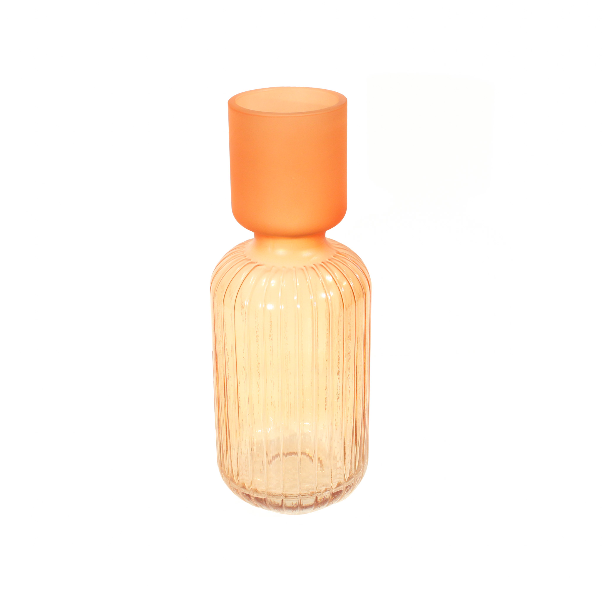 Este vibrante jarrón naranja agrega un toque de color y alegría a tu espacio. Su diseño elegante y llamativo lo convierte en el centro de atención de tu mesa.