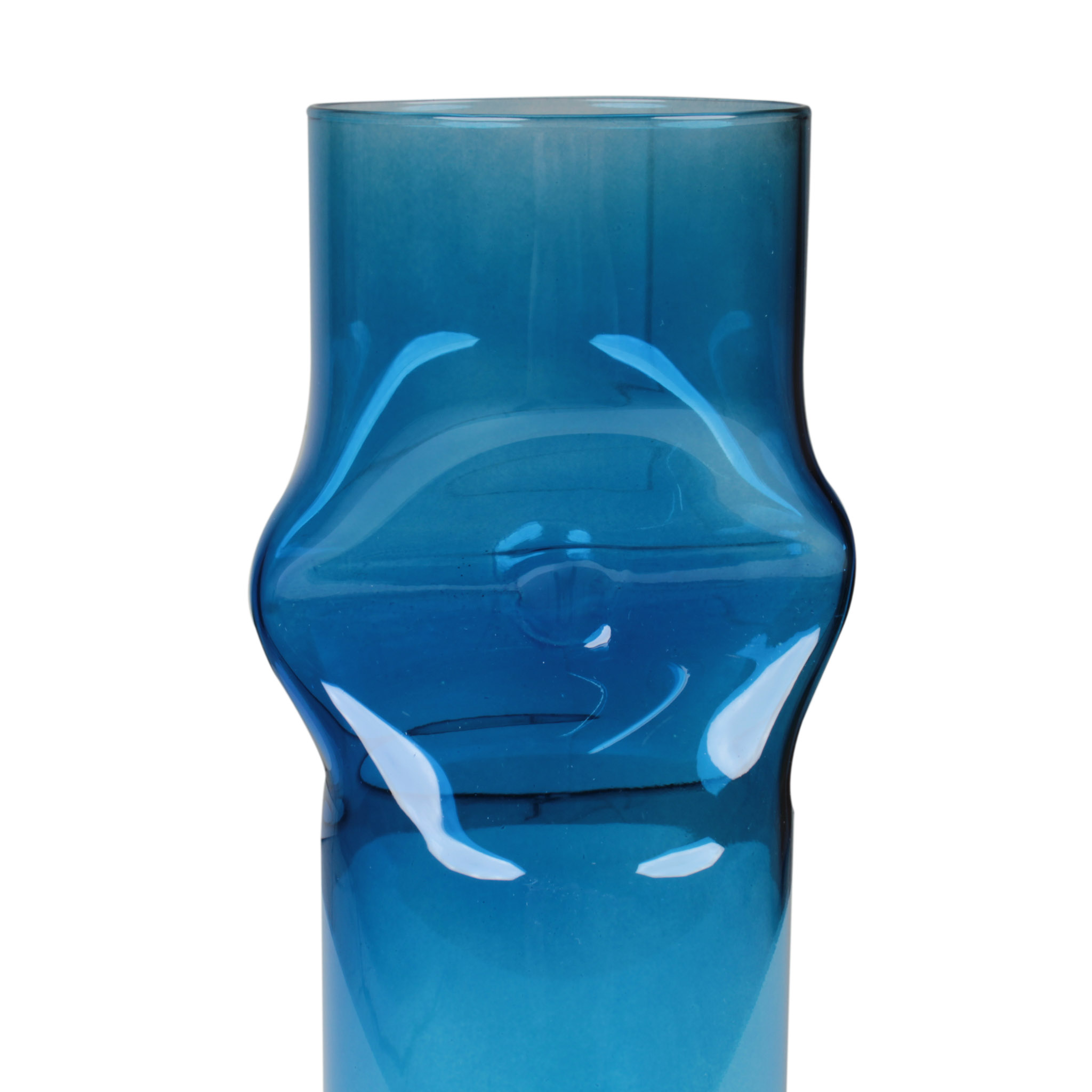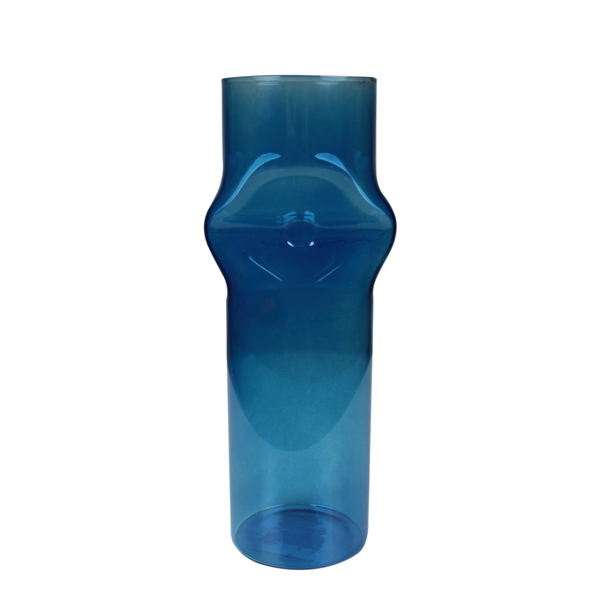 Este adorno de mesa es un delicado florero de vidrio azul alto, ideal para añadir un toque de color y elegancia a cualquier espacio. Su diseño compacto y sofisticado lo convierte en una pieza perfecta para mesas, estanterías o escritorios.