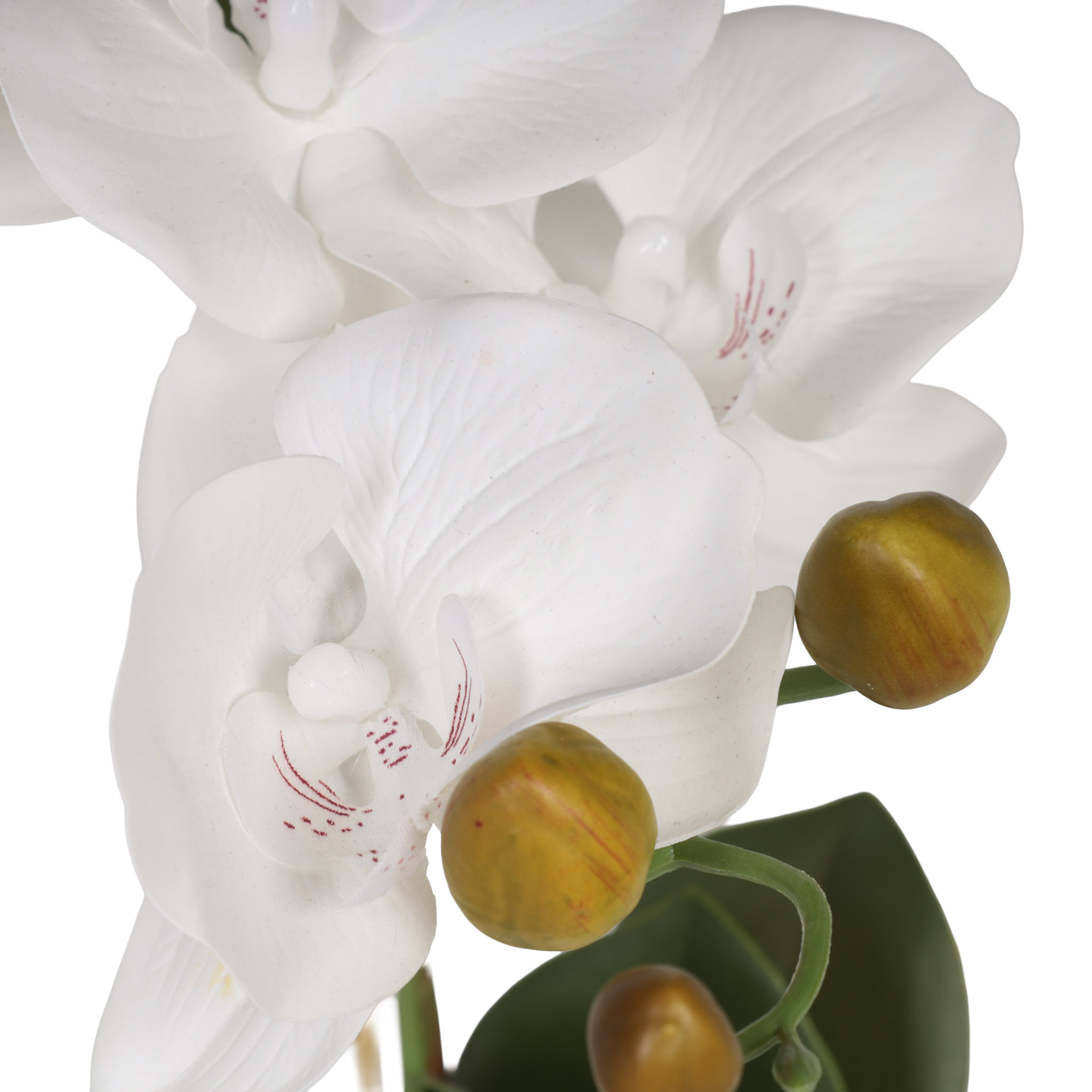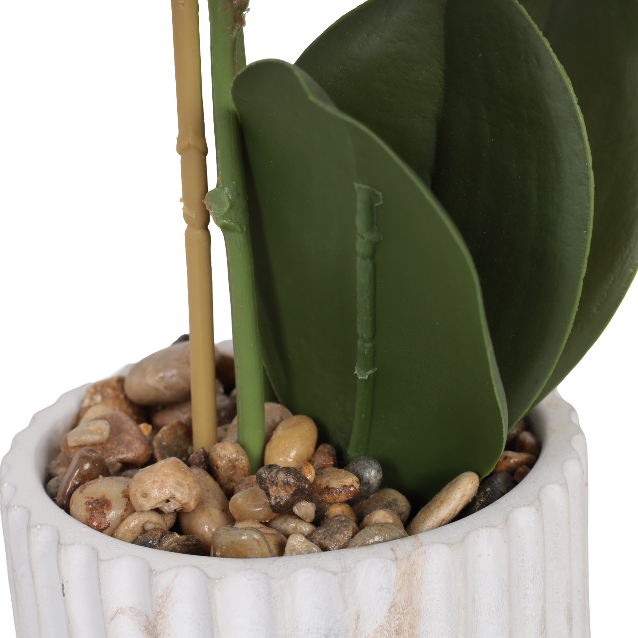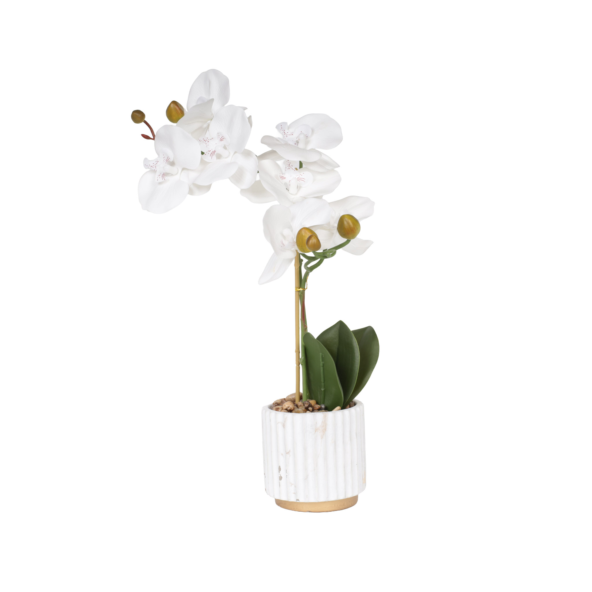 Planta artificial decorativa blanca y verde, con pote en color blanco.