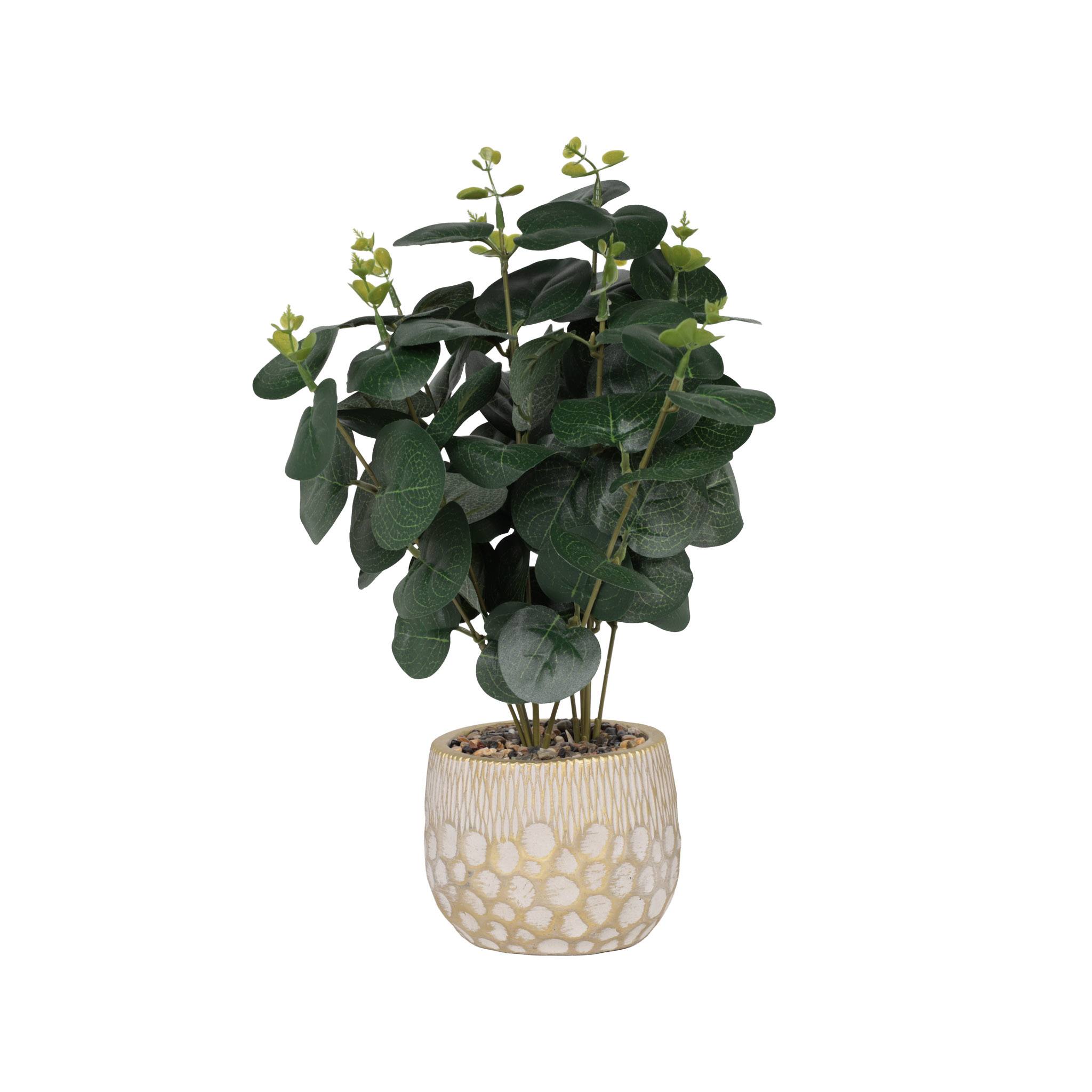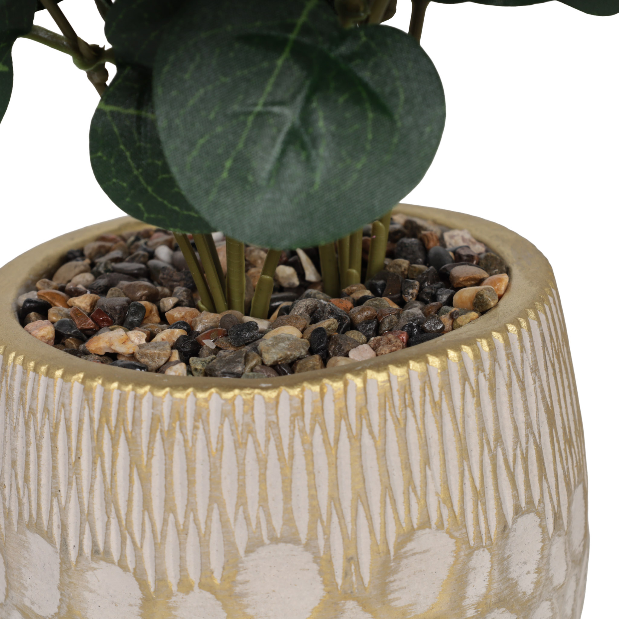 Planta artificial decorativa verde con pote de cemento.