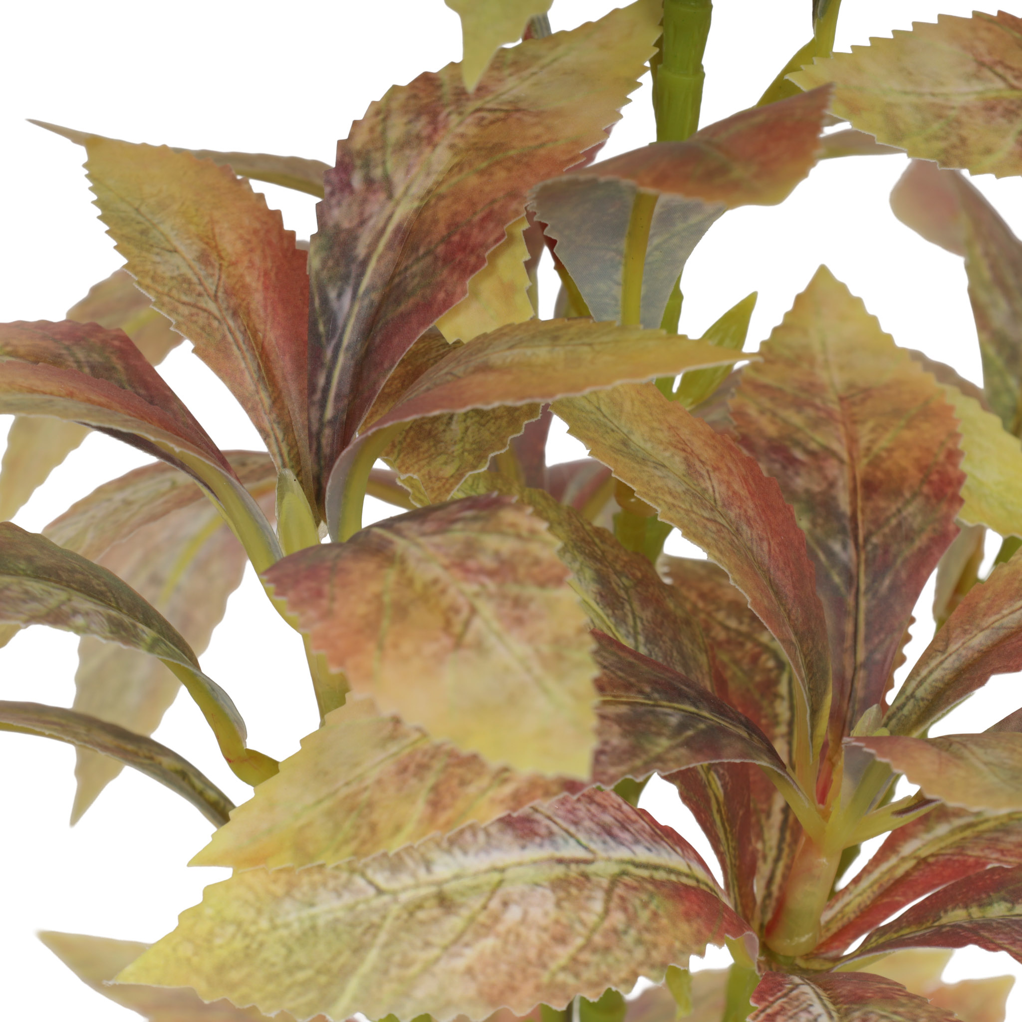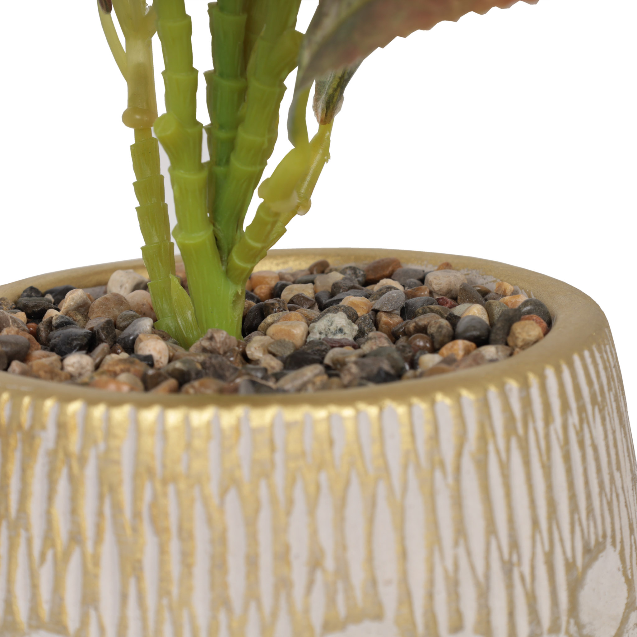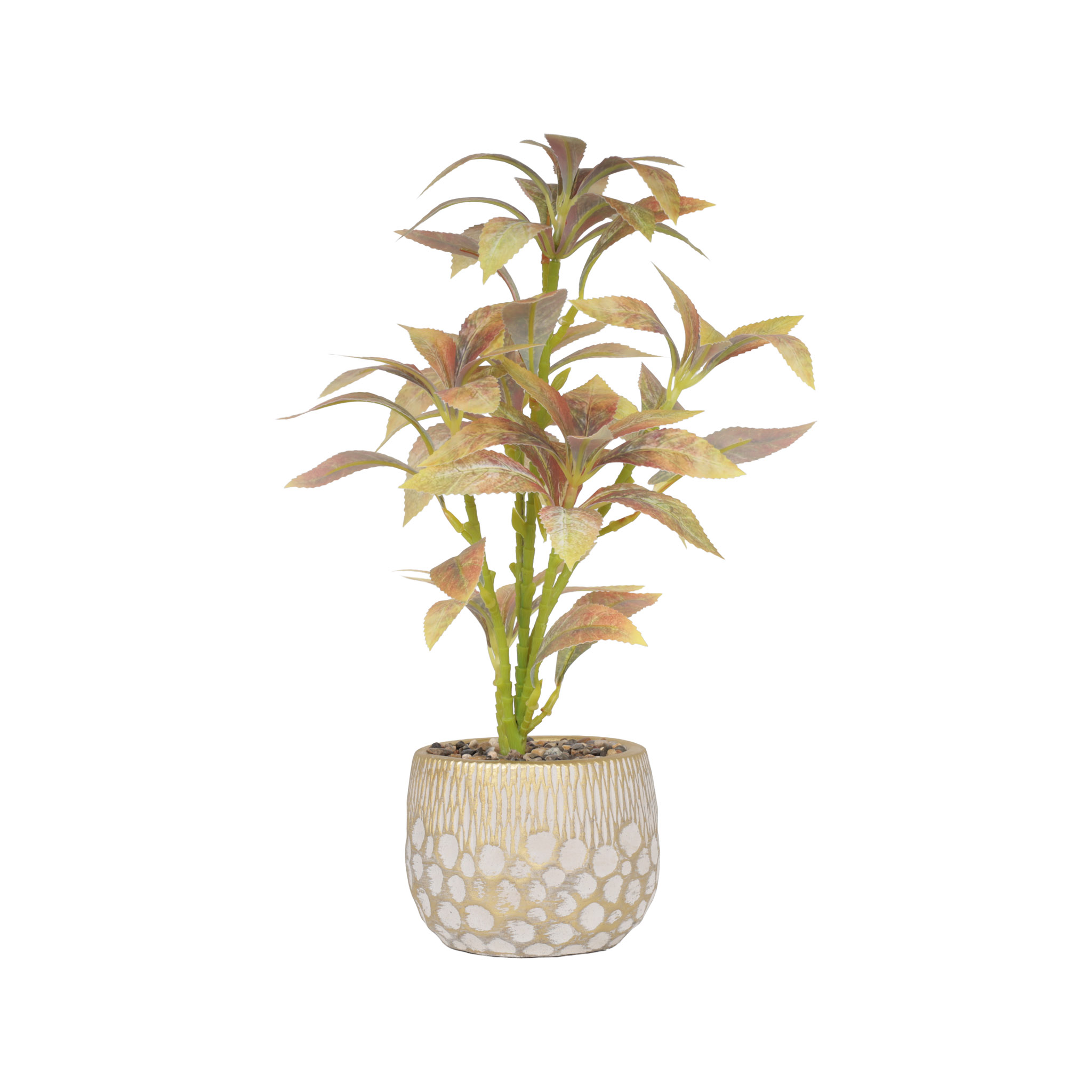 Planta artificial decorativa amarillas y verdes con pote de cemento.
