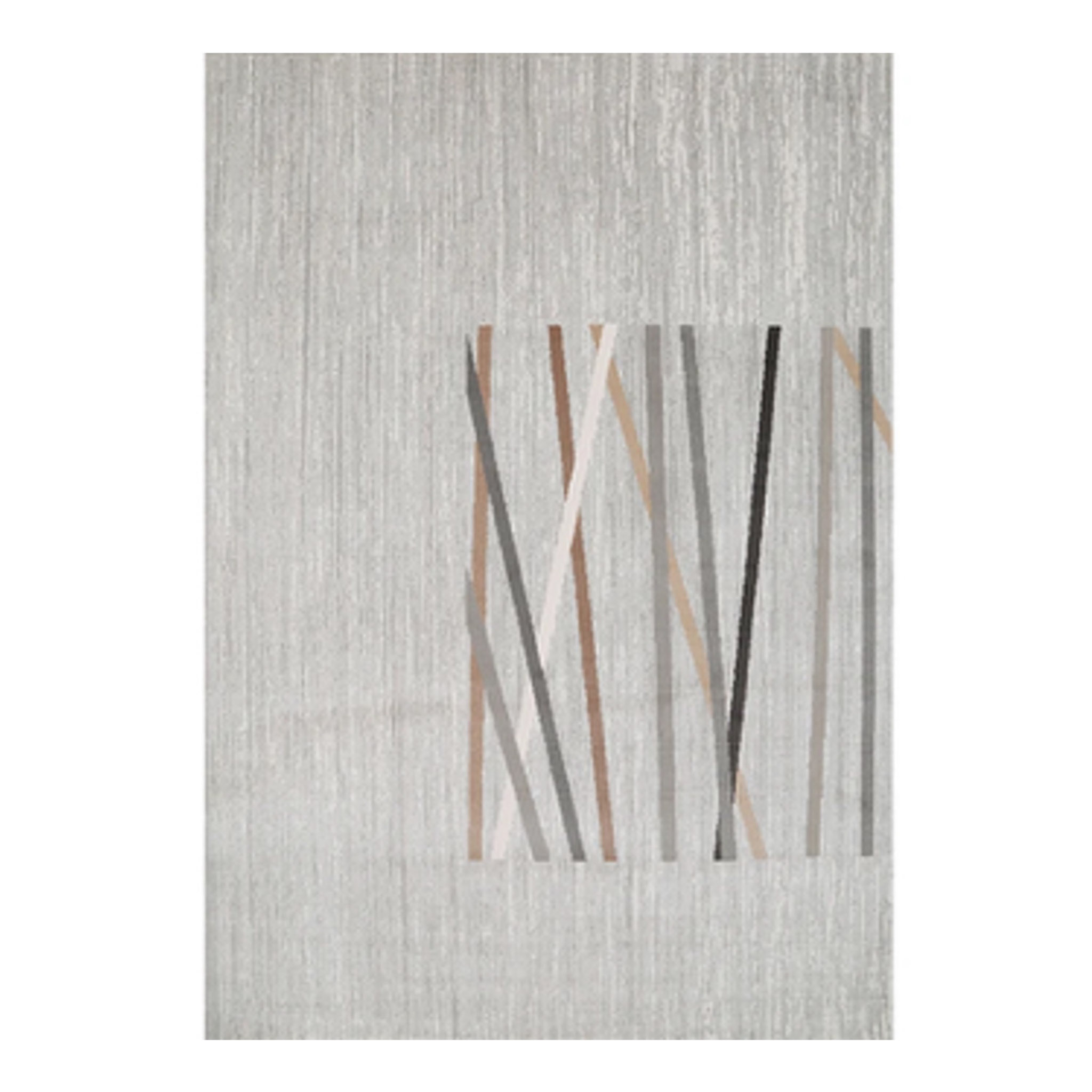 Alfombra rectangular de nylon, en tono gris con rayas negra, gris y crema, 5.24 x 7.54 pies.