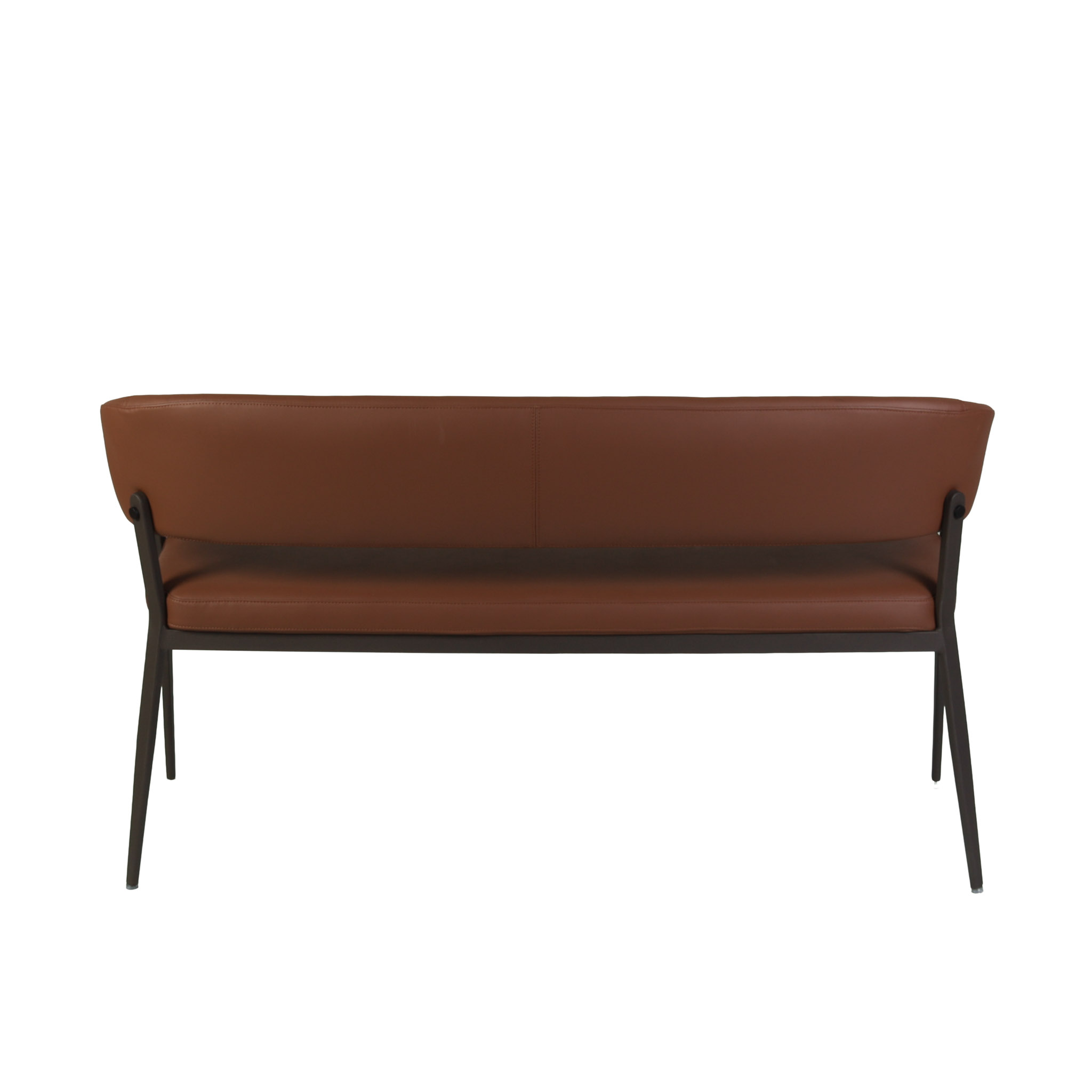 Un banco de diseño envolvente, con tapizado en cuerina color chocolate o gris y patas oscuras. Ideal para dar un toque acogedor y contemporáneo a cualquier estancia.