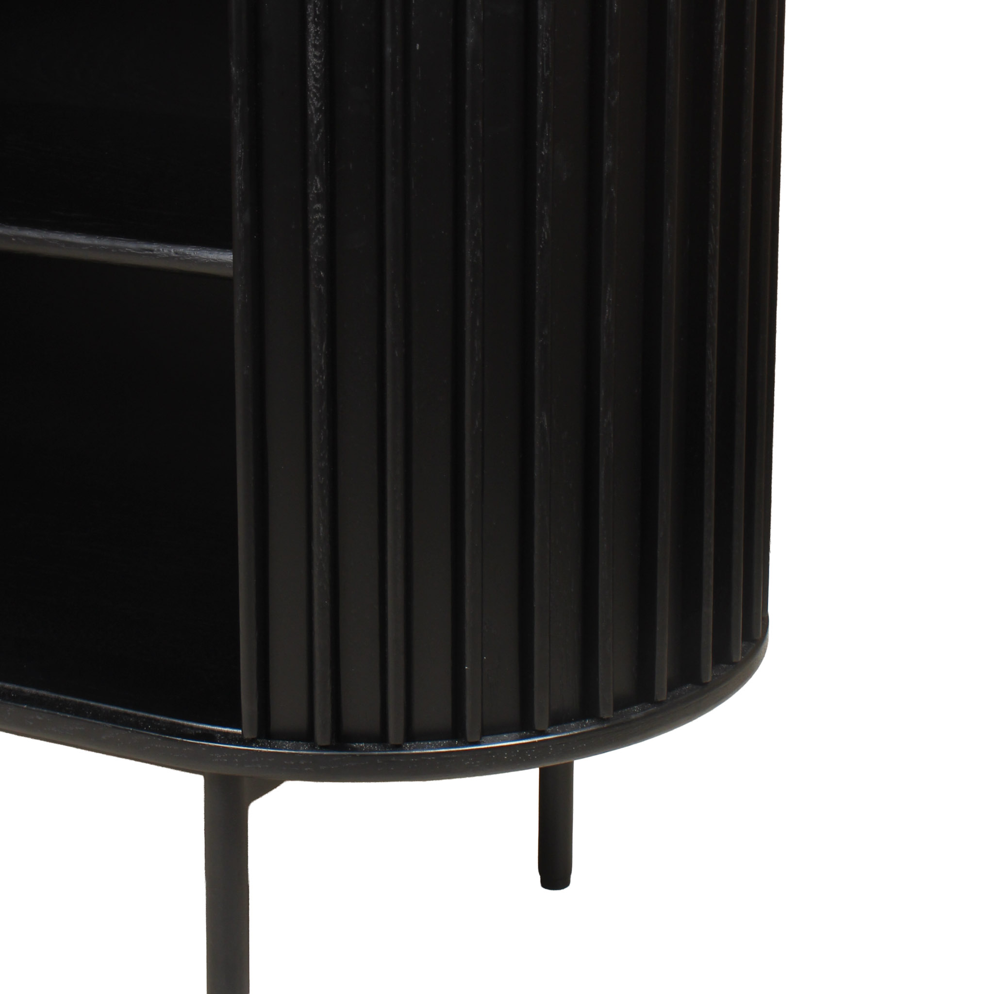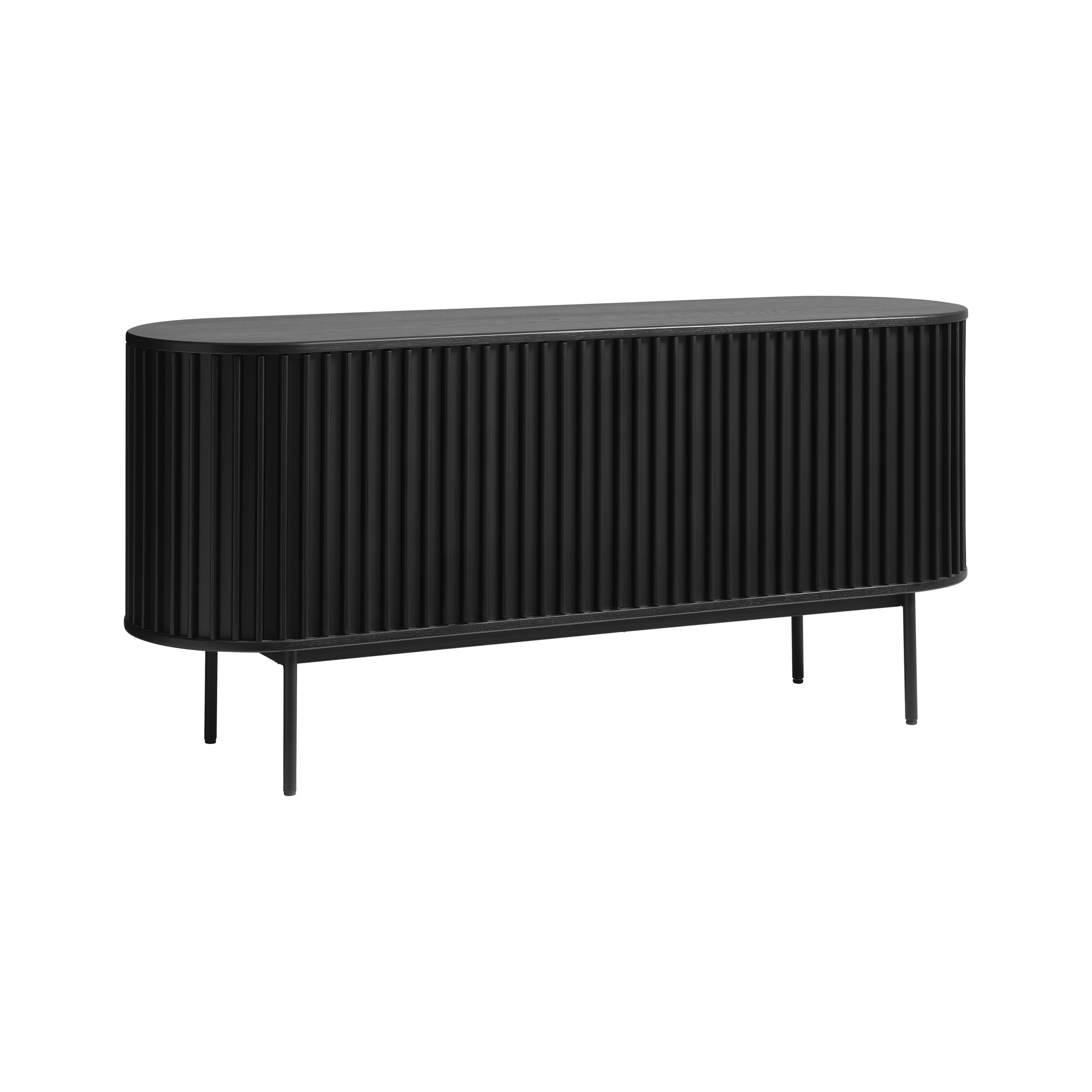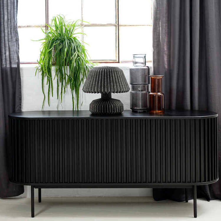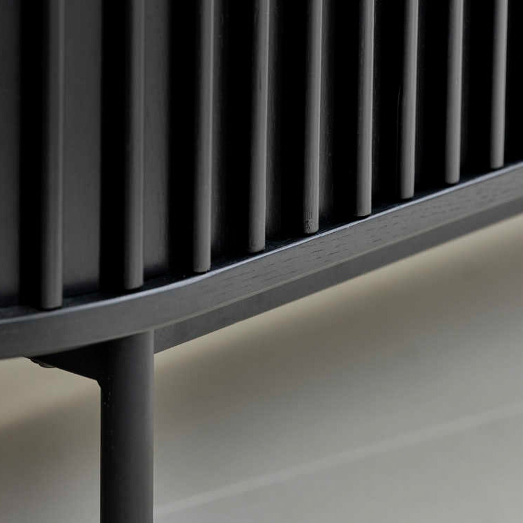 Bufetera modelo Siena en madera de roble con acabado negro y patas de metal negro, perfecta para un estilo moderno y sofisticado. Su diseño combina la elegancia del roble oscuro con la solidez del metal, creando una pieza funcional que aporta carácter y estilo a cualquier comedor o sala de estar.