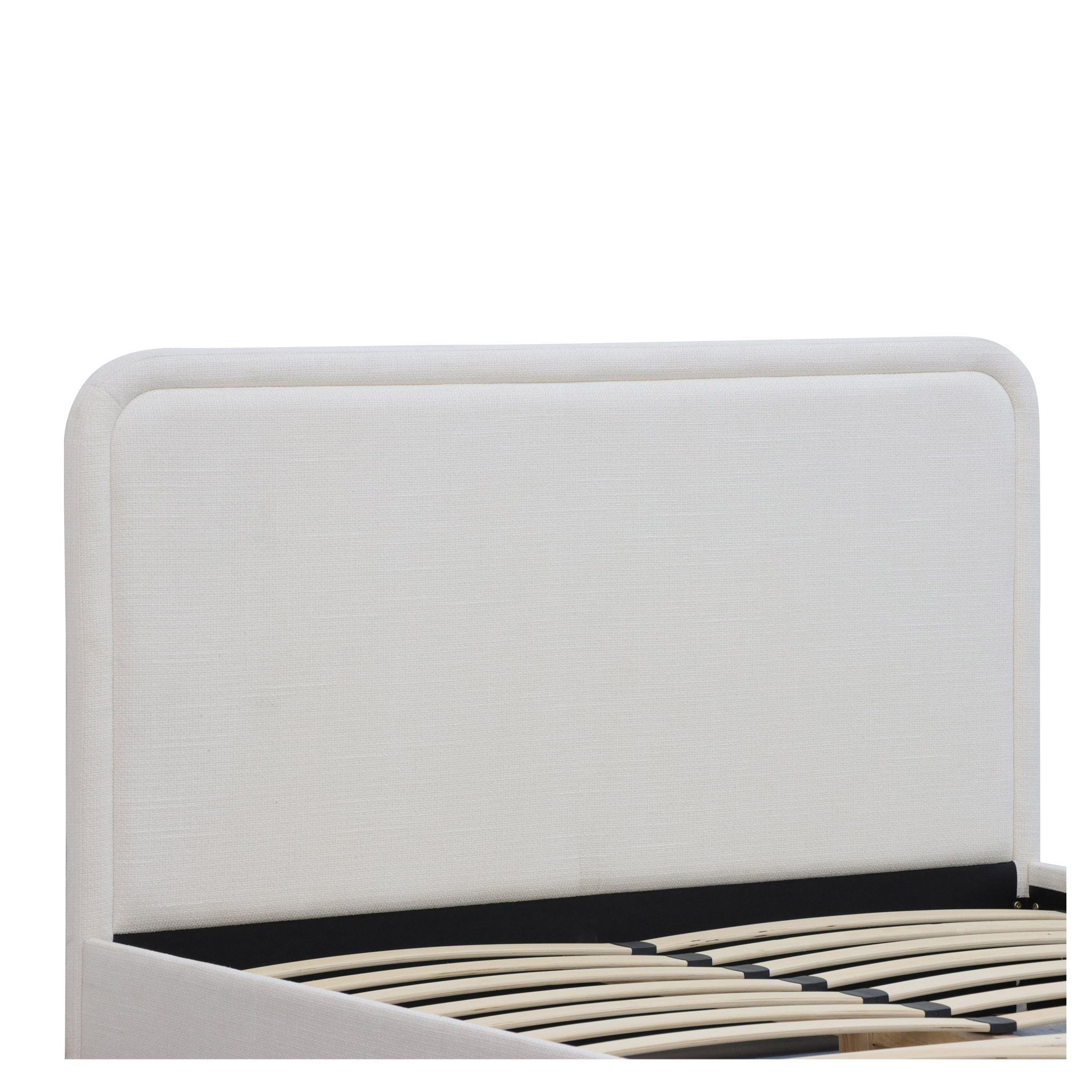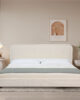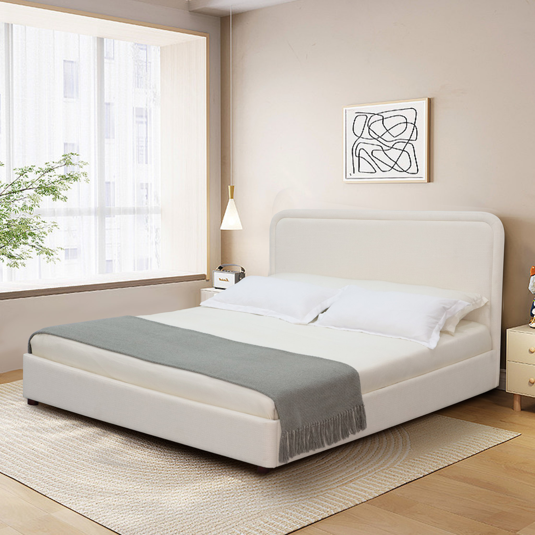 Cama King de tela tapizada. Un diseño amplio y elegante que ofrece comodidad y estilo, ideal para crear un ambiente lujoso y relajante en tu dormitorio.