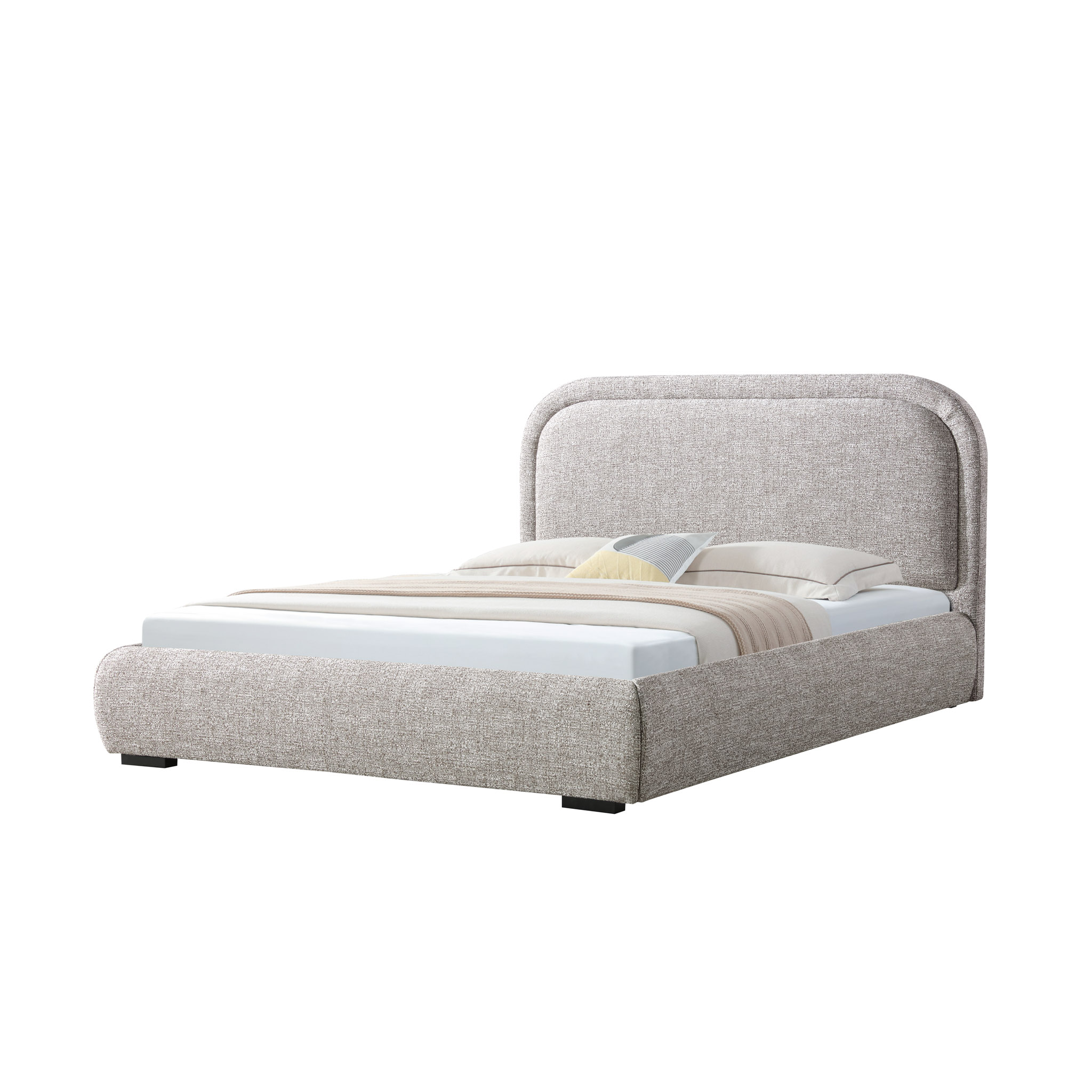 Con una rica mezcla de tonos beige y marrón, esta cama queen introduce matices cálidos y acogedores. Ideal para dormitorios donde se busca balance entre lo clásico y lo actual.