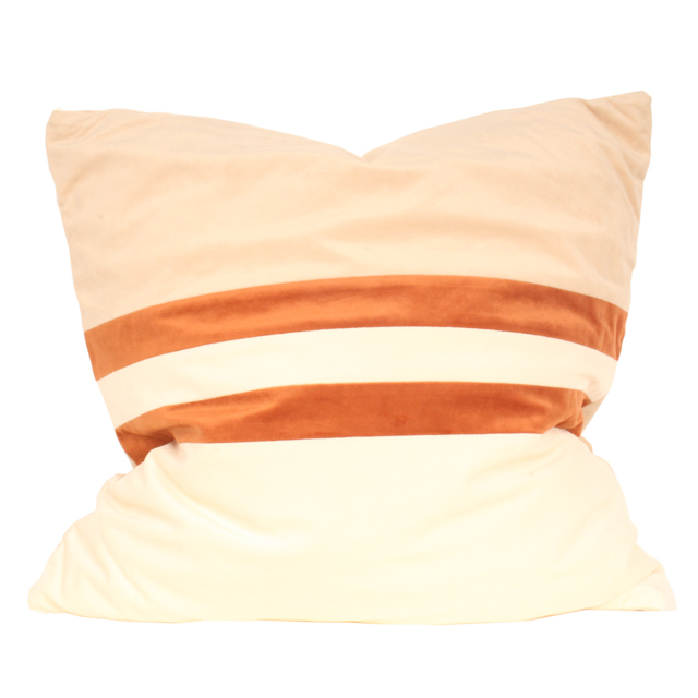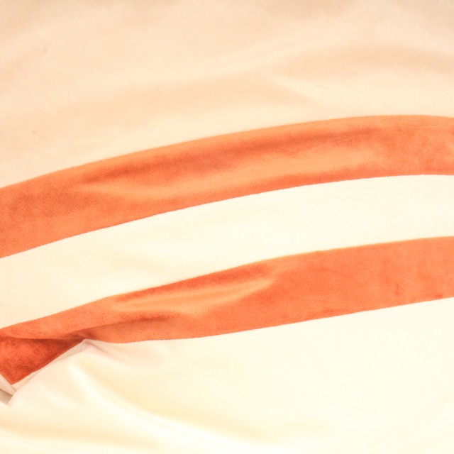 Un cojín blanco con dos líneas horizontales en tono terracota, ideal para aportar un toque cálido y moderno. Su diseño minimalista y sofisticado combina fácilmente con cualquier estilo de decoración.
