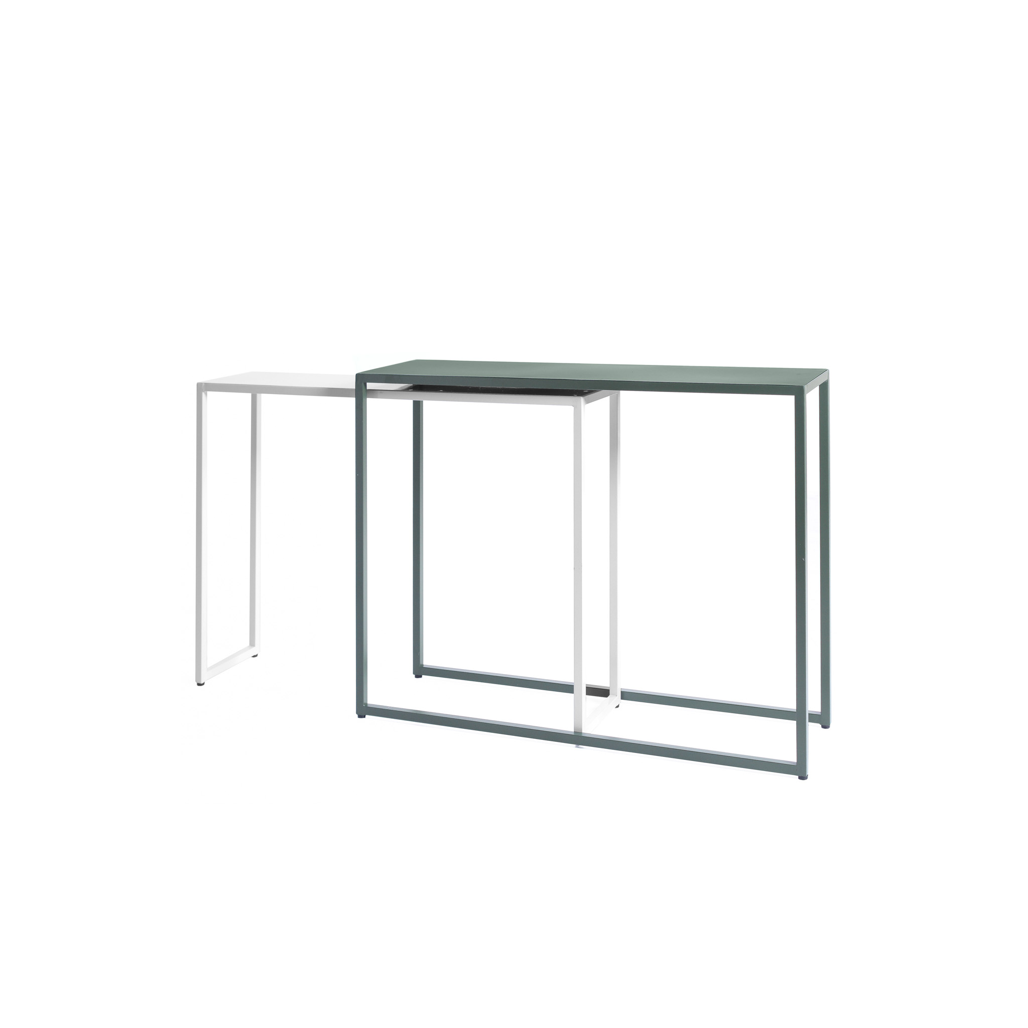 Consola de metal en un atractivo juego de colores verde y blanco. Esta set de piezas únicas combina funcionalidad y estilo, ofreciendo un toque contemporáneo a cualquier espacio. Con su diseño minimalista y acabado de alta calidad, esta consola es perfecta para complementar tu decoración con un toque de frescura y sofisticación.