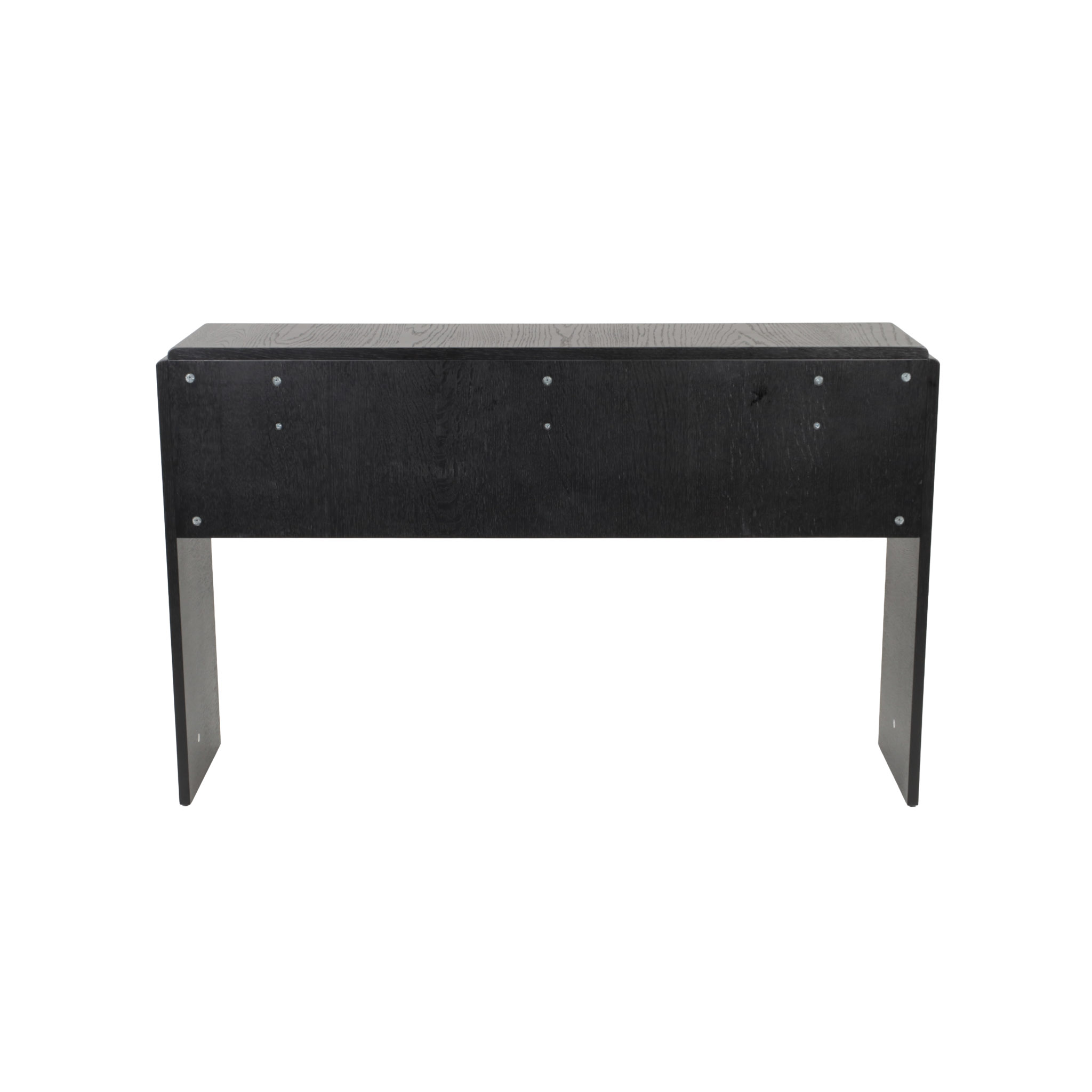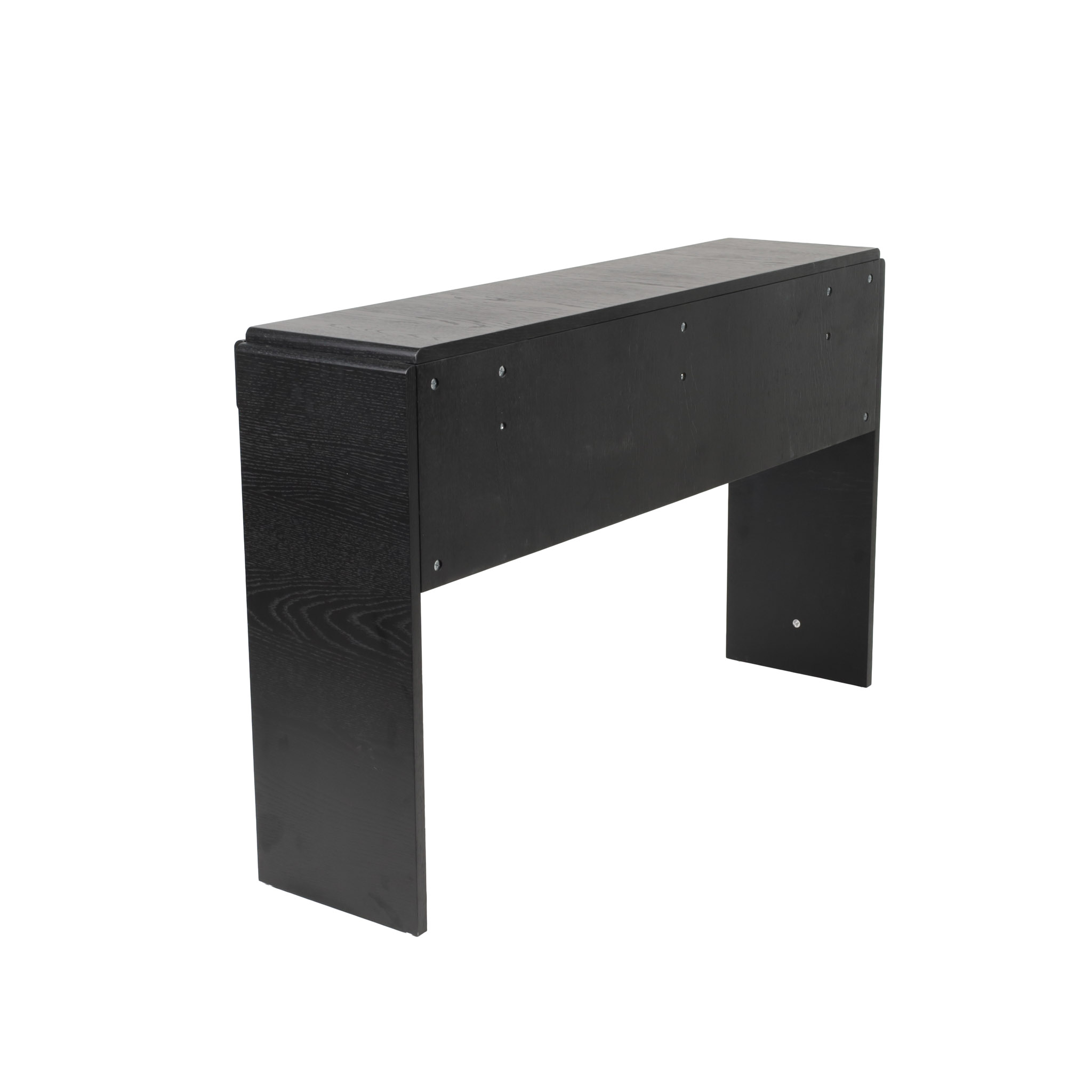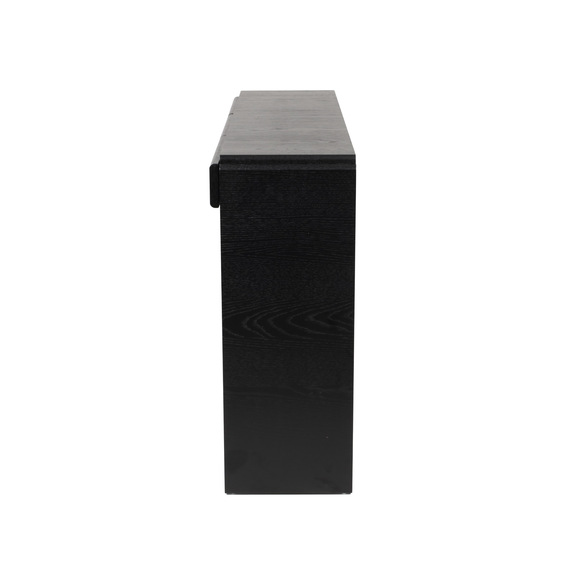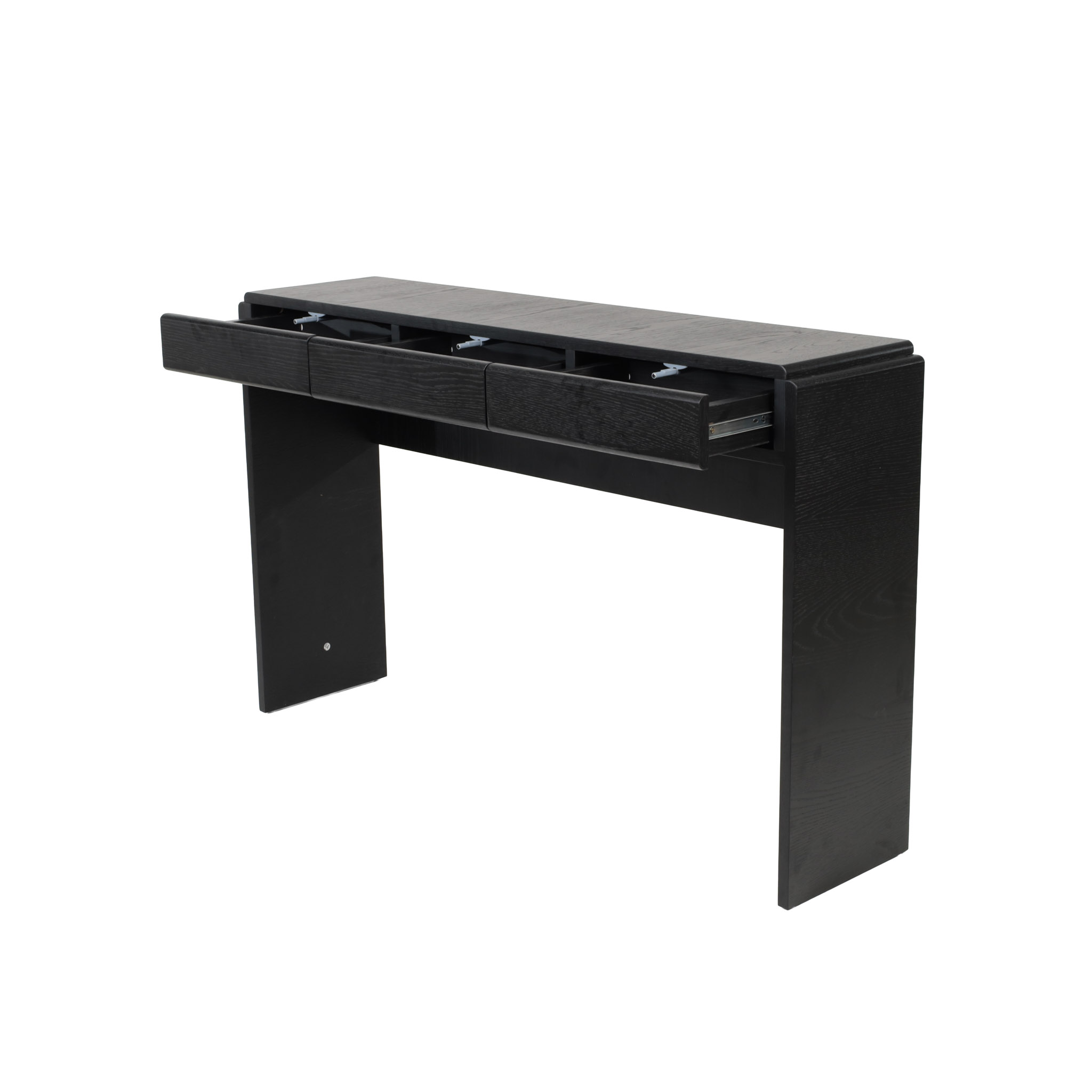 Tonos neutros, diseño elegante. Esta versión en madera MDF veneer de roble negro eleva cualquier espacio con su presencia sobria y dos gavetas prácticas para mantener el orden con estilo.