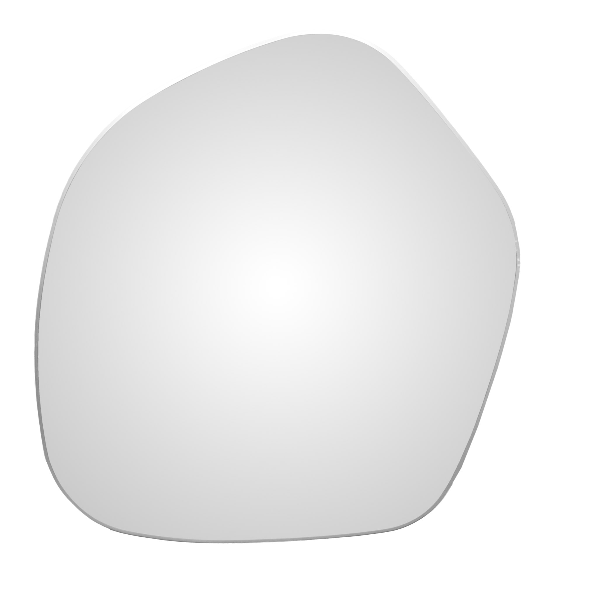 Espejo asimétrico con marco plateado. Diseño moderno y audaz, perfecto para añadir un toque único a cualquier espacio.