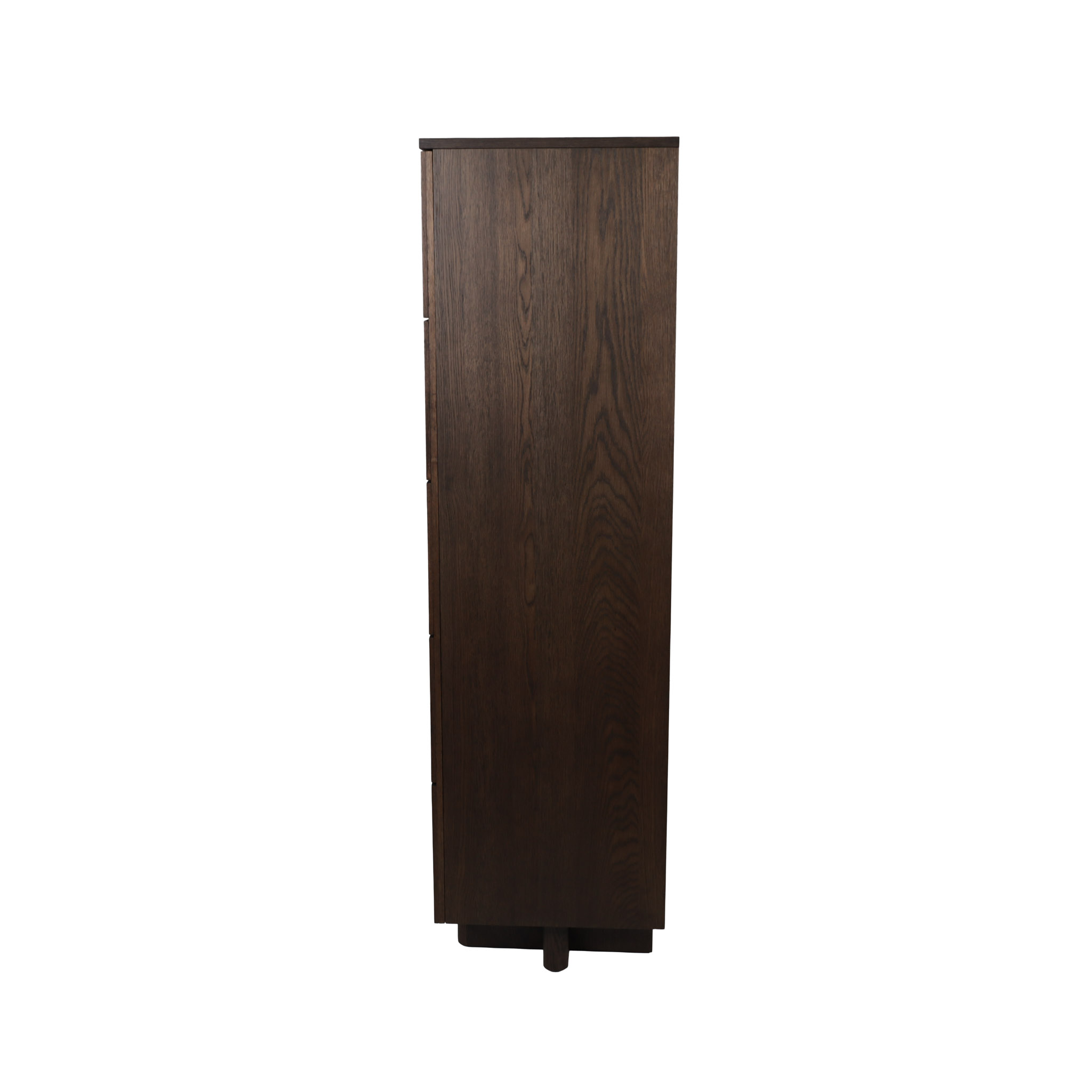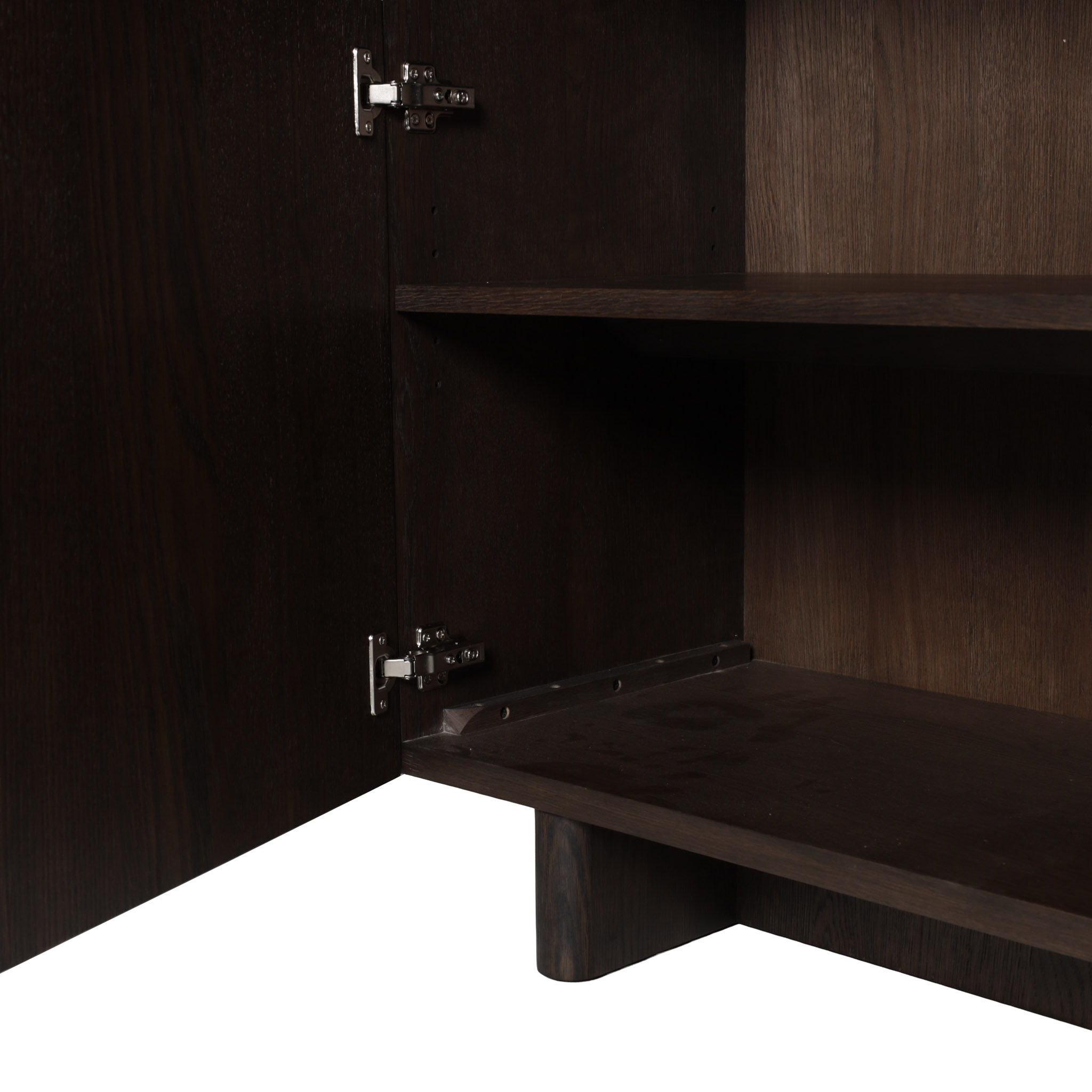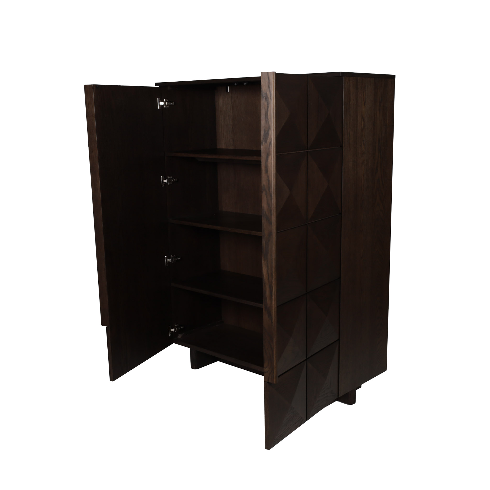 Diseño sobrio y presencia sólida. El Gabinete Byblos destaca por la madera en su acabado chocolate oscuro y forma limpia, ideal para ambientes contemporáneos que valoran el orden sin perder calidez visual.