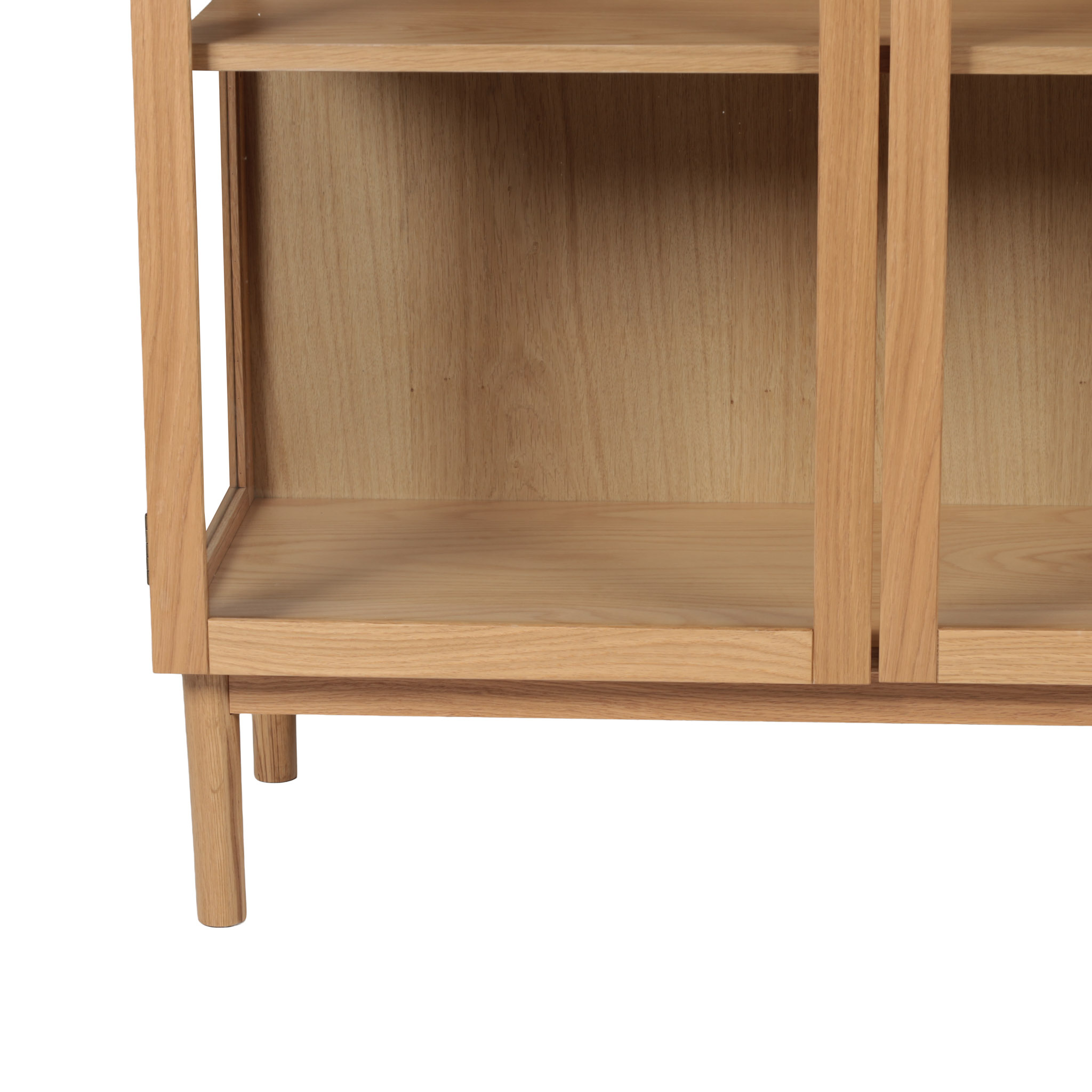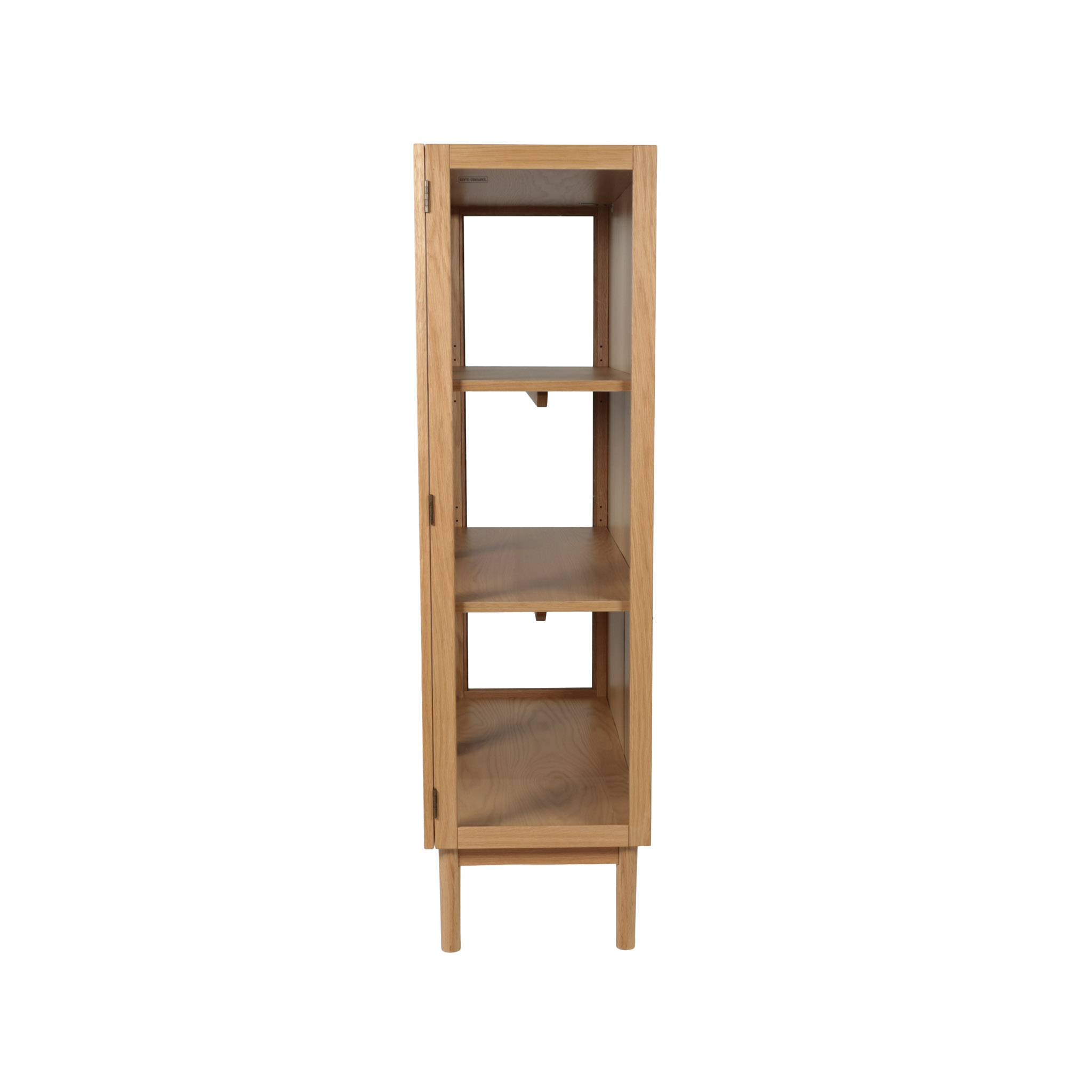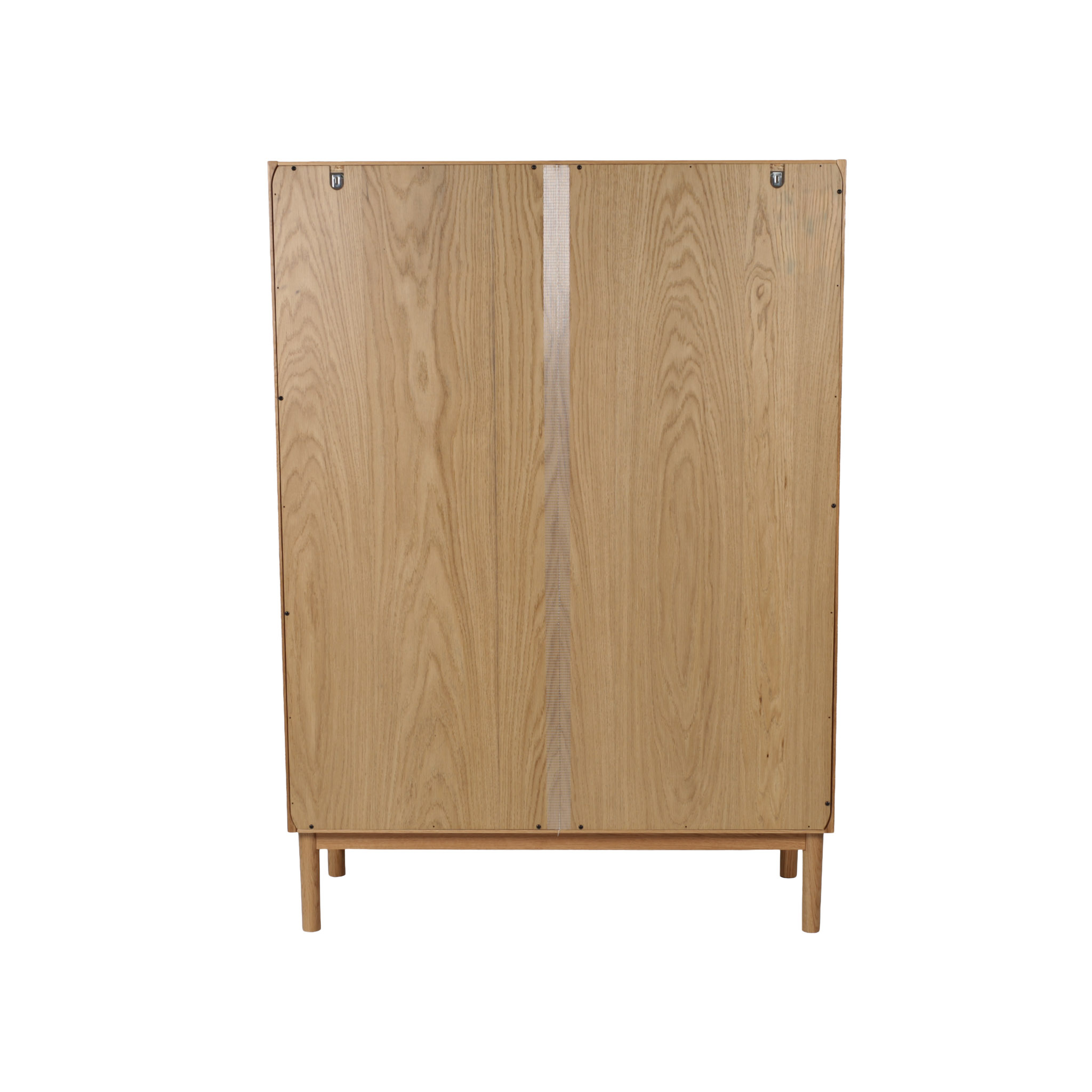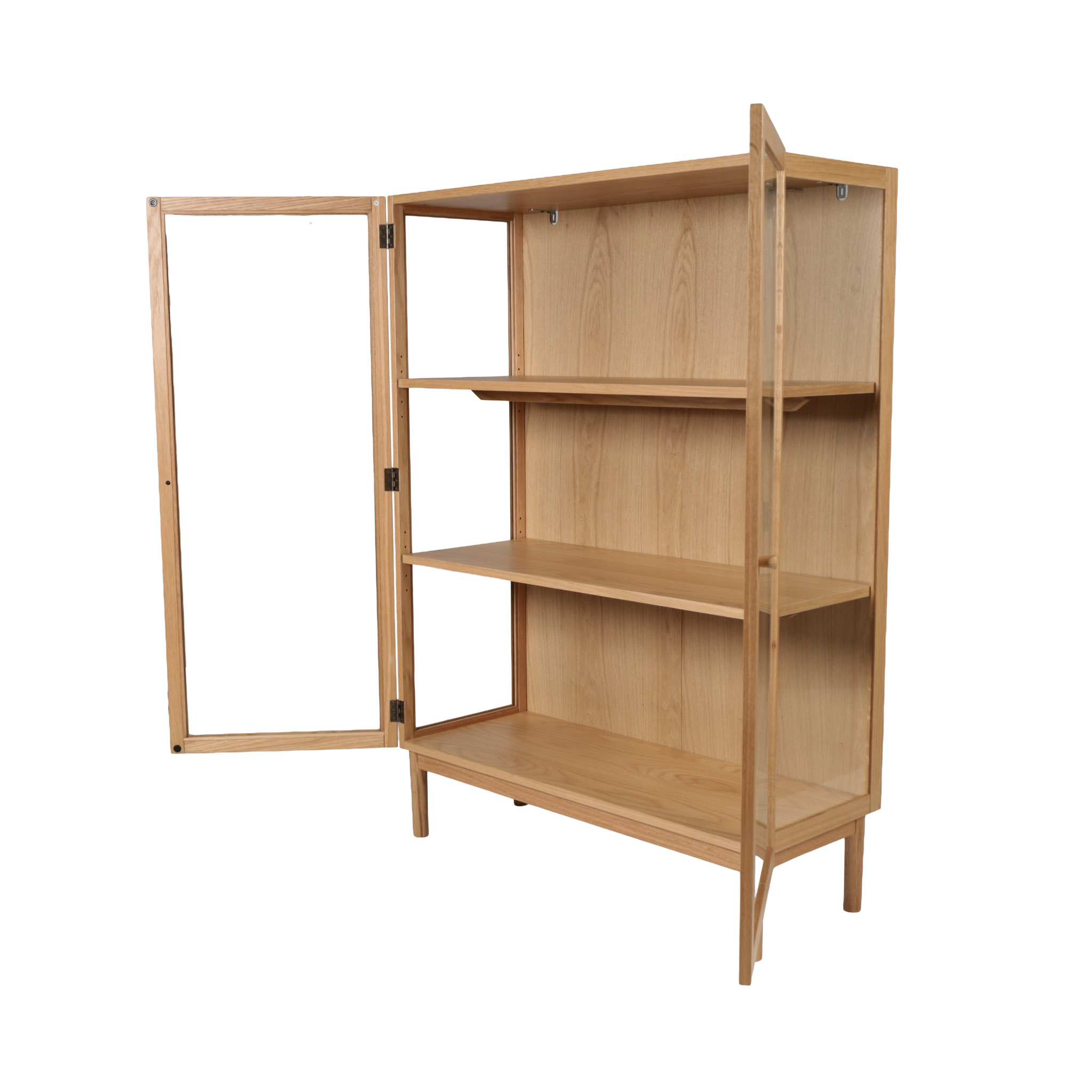 El Gabinete bajo Elba combina estructura en madera natural con puertas de vidrio que permiten una exhibición refinada. Ideal para vajillas, objetos decorativos o libros, es un complemento elegante para espacios que equilibran funcionalidad y estética.