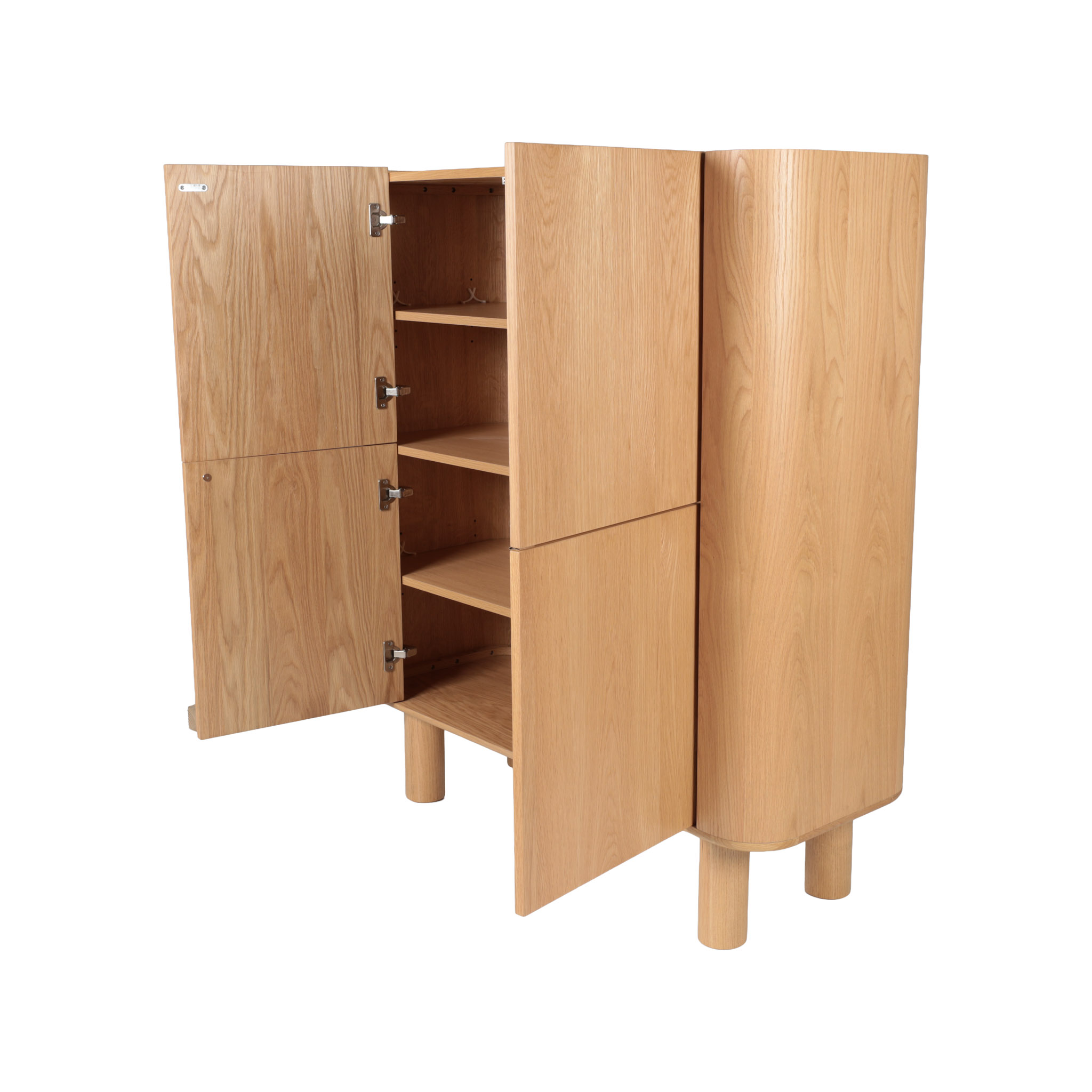 El Gabinete Monsun alto fusiona calidez natural con líneas limpias. Fabricado en madera de acabado claro, es una opción versátil para ambientar livings, comedores o estudios con un aire relajado y ordenado.