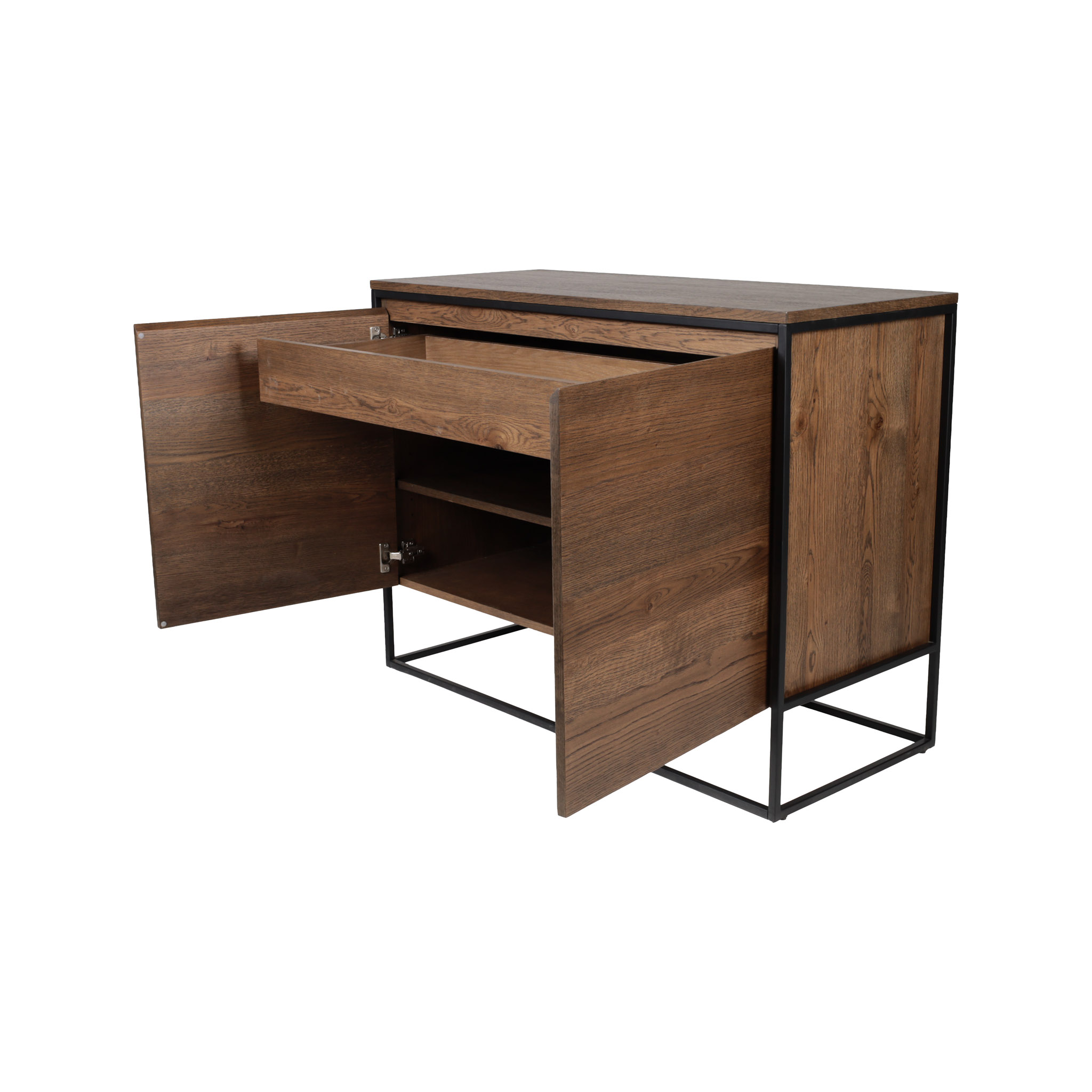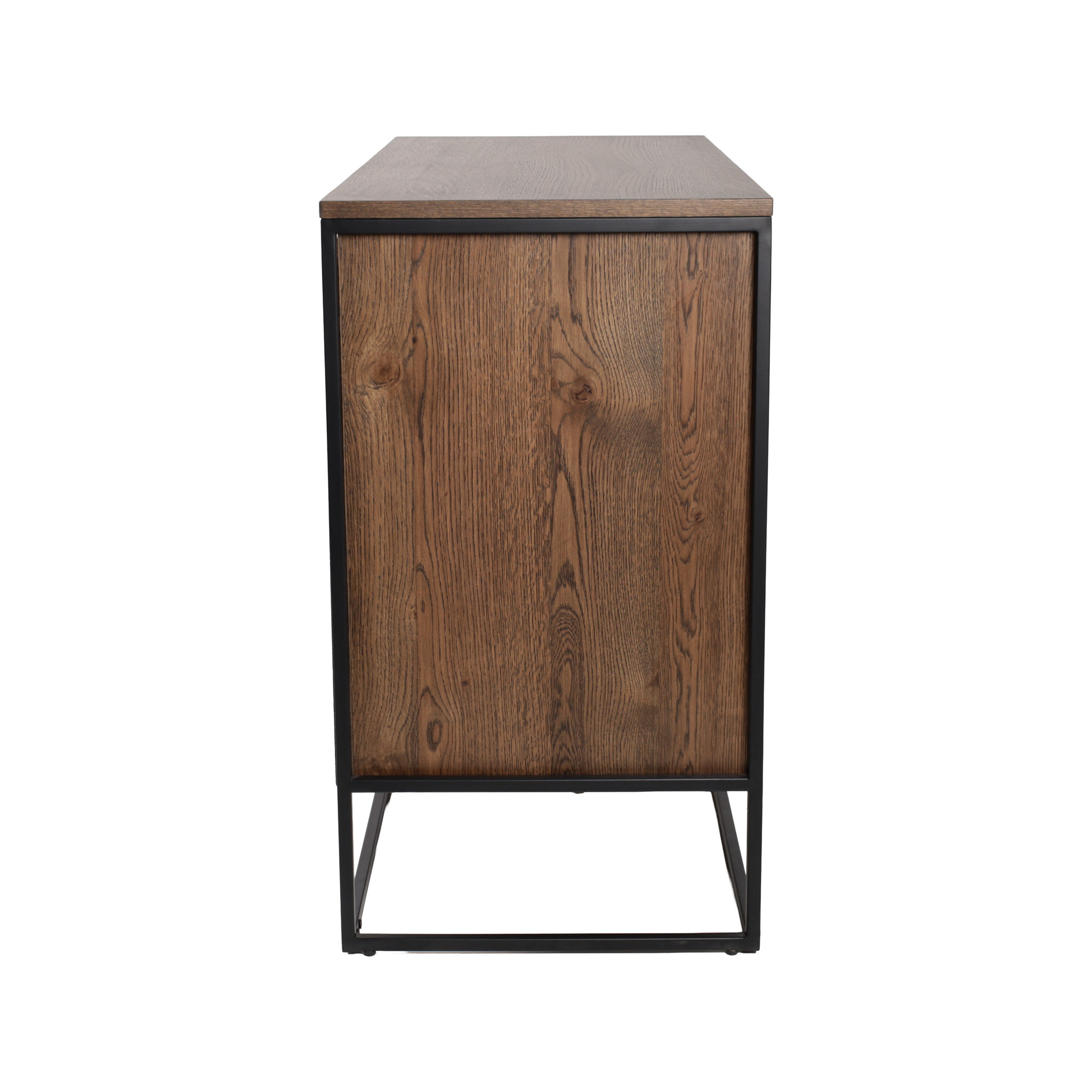 El Gabinete Rivoli bajo combina diseño sobrio con practicidad. Fabricado en madera con acabado ahumado y sostenido sobre patas de metal negro, es ideal para almacenar discretamente en livings, comedores o áreas de trabajo que buscan estilo y funcionalidad.