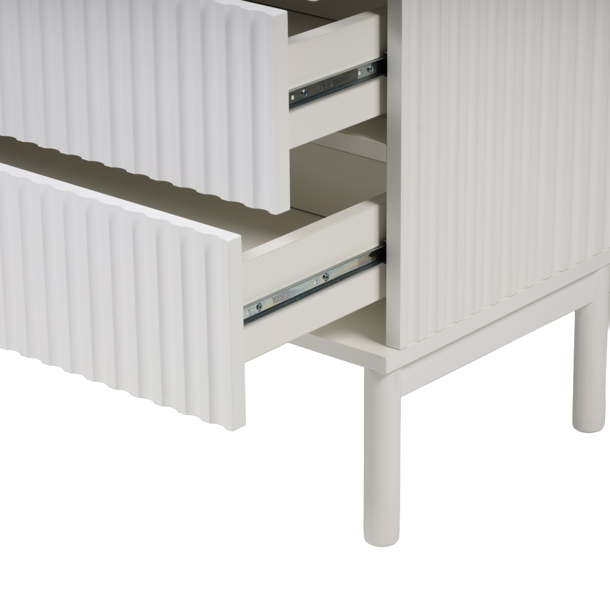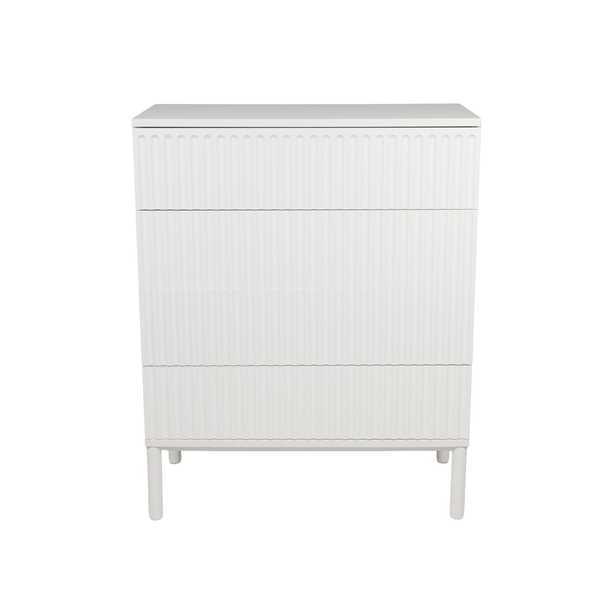 Gavetero bajo fabricado en resistente madera MDF y sólida en color blanco. Su diseño minimalista con cuatro gavetas combina funcionalidad y estilo, ideal para organizar y decorar cualquier espacio. Perfecto para un ambiente moderno.