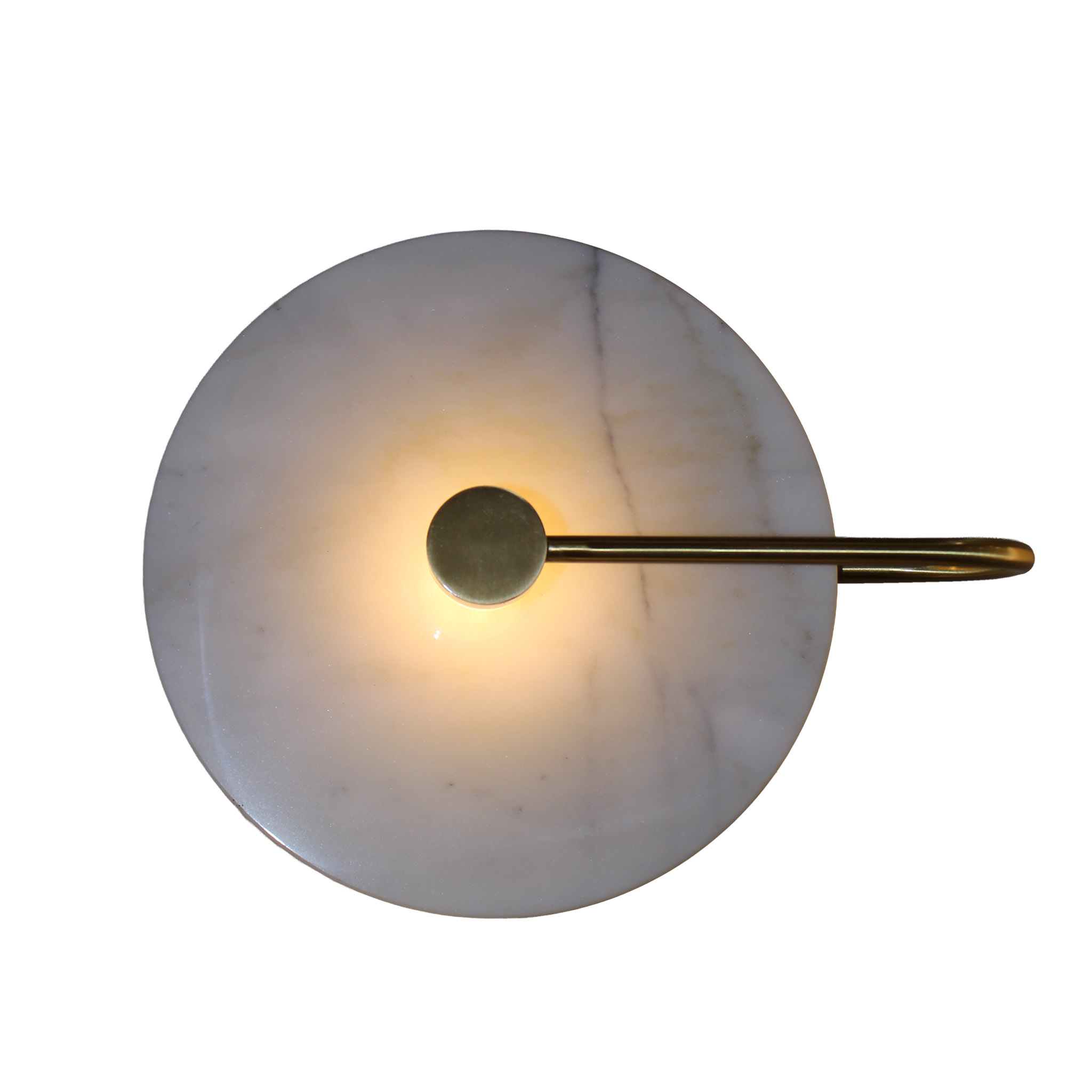 Lámpara de pared de marmol blanco y metal dorado con opción a luces de tres colores.