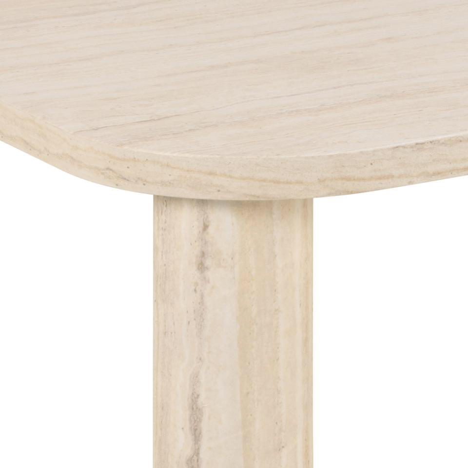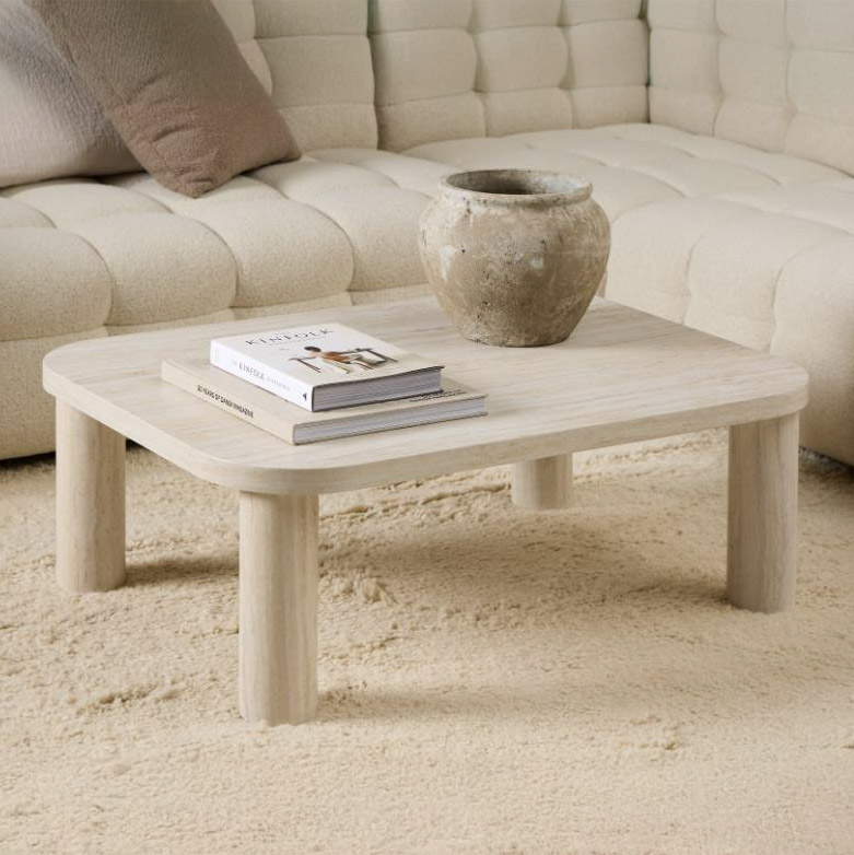 La mesa de centro Solano combina un elegante acabado travertino beige con un formato rectangular que aporta amplitud y funcionalidad. Su diseño sobrio y sofisticado la convierte en una pieza versátil, perfecta para realzar la decoración de salas modernas o contemporáneas. Ideal para quienes buscan estilo y practicidad en un solo mueble.