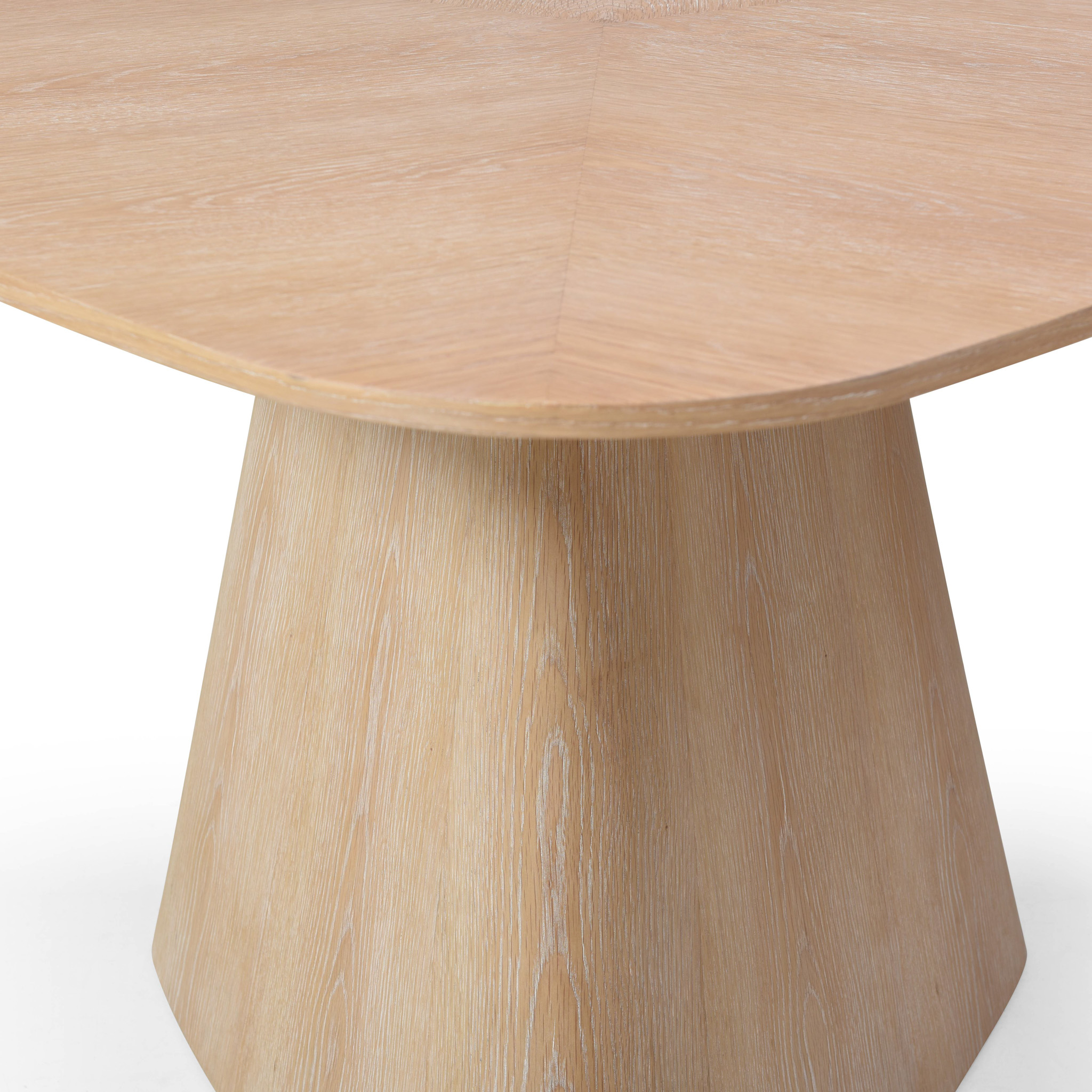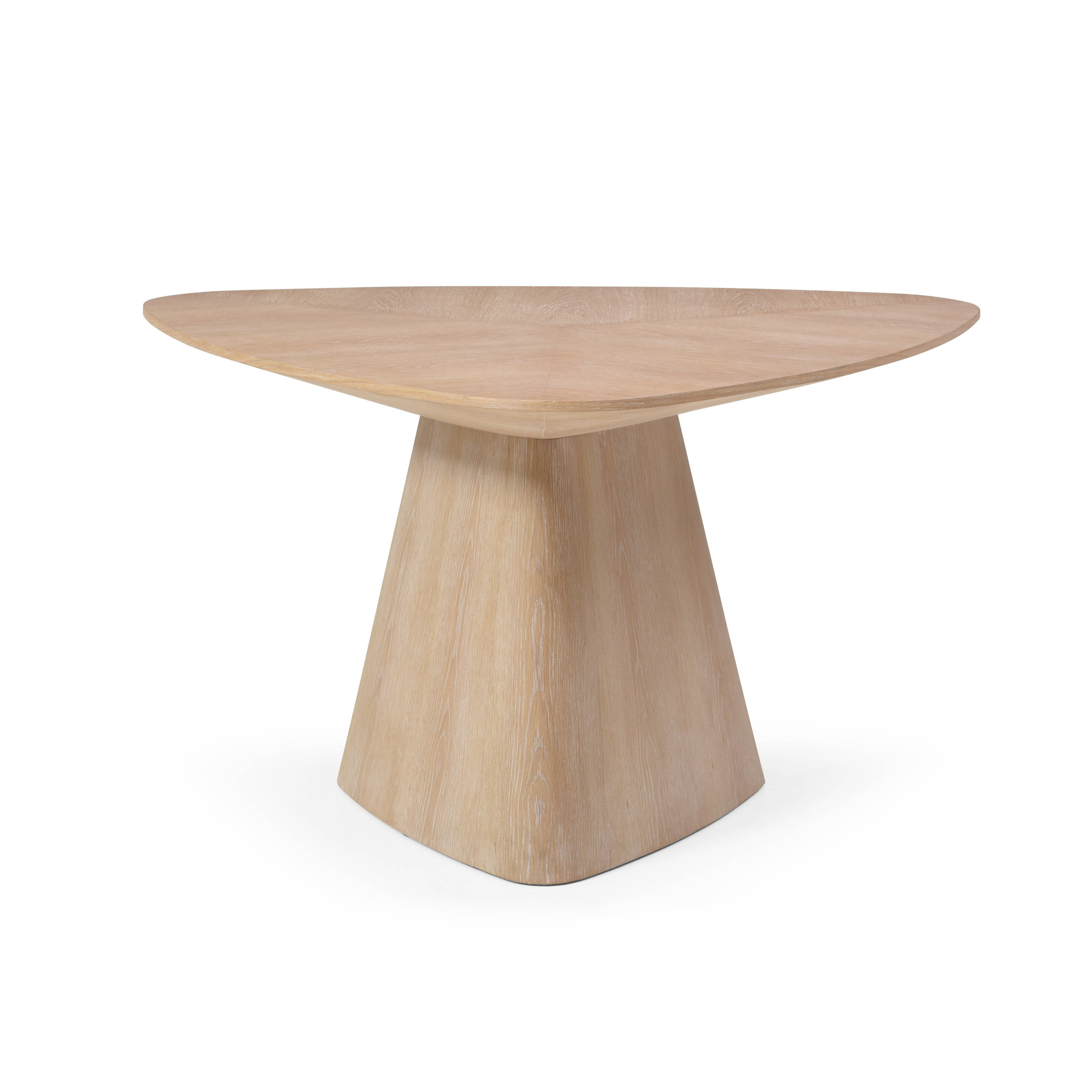 Una mesa que rompe con lo convencional. Su diseño de forma orgánica aporta fluidez y naturalidad a cualquier espacio, mientras que su estructura de madera MDF con veneer almendra en acabado Whitewash resalta su estética moderna y versátil. Perfecta para quienes buscan una pieza única y con carácter.