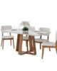 Mesa de comedor rectangular modelo Wood con sobre de vidrio off white y base de madera natural, ideal para un estilo contemporáneo y acogedor. Su diseño combina la ligereza del vidrio con la calidez de la madera, creando una pieza elegante que aporta luminosidad y frescura a cualquier espacio.