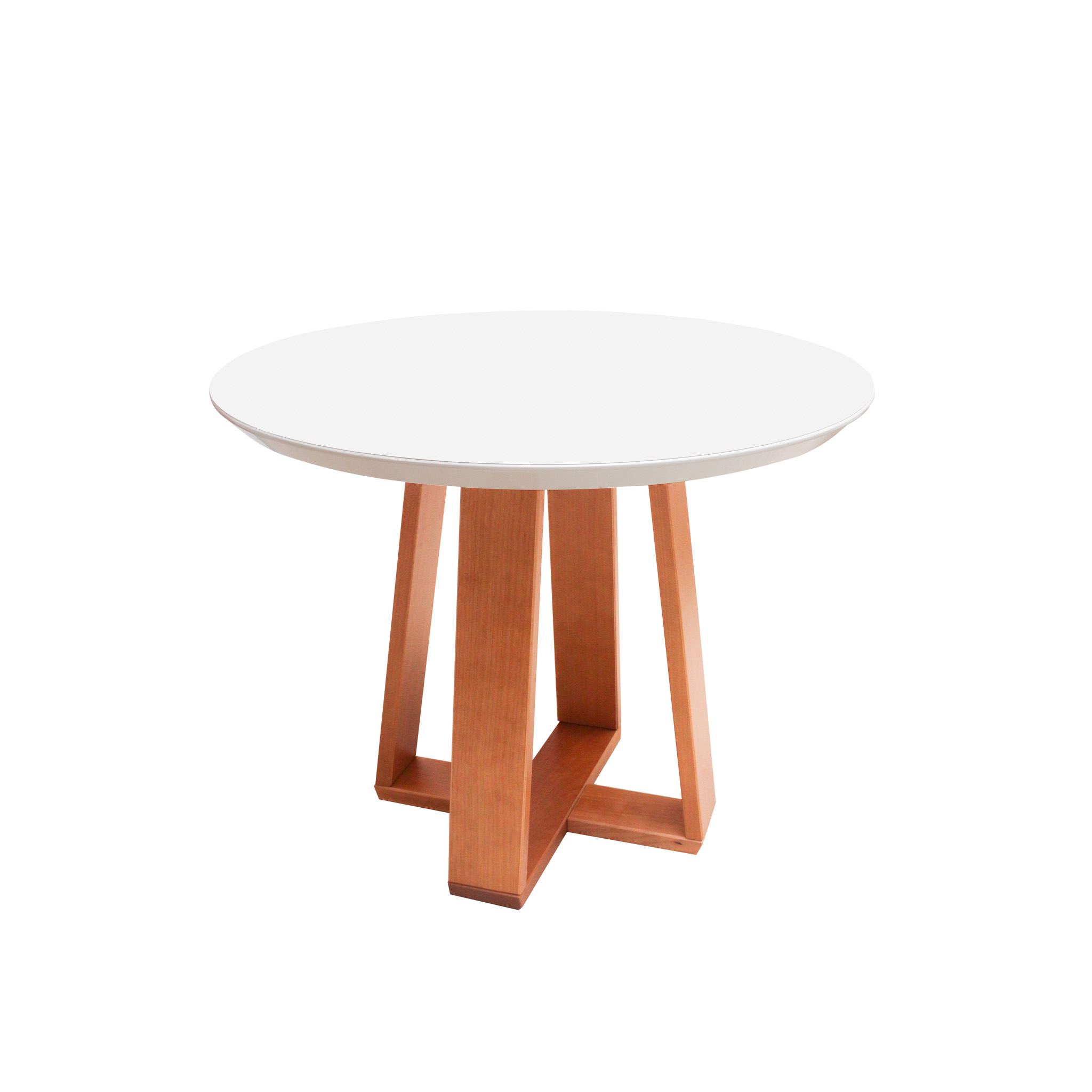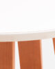 Mesa de comedor redonda de madera modelo Wood con sobre off white y base natural, perfecta para un estilo acogedor y moderno. Su diseño combina la frescura del acabado claro con la calidez de la madera natural, creando una pieza elegante que añade luminosidad y un toque de frescura a cualquier comedor.