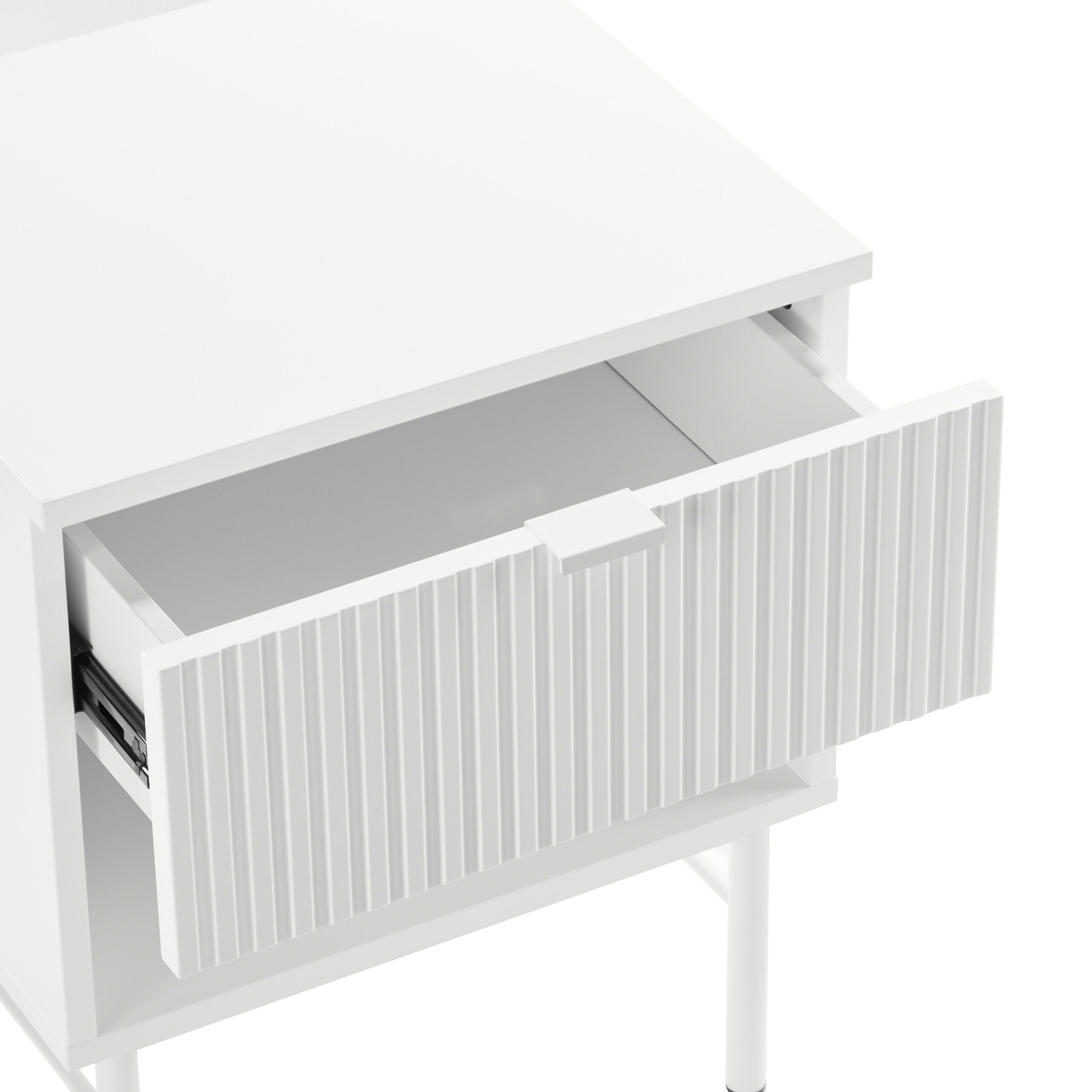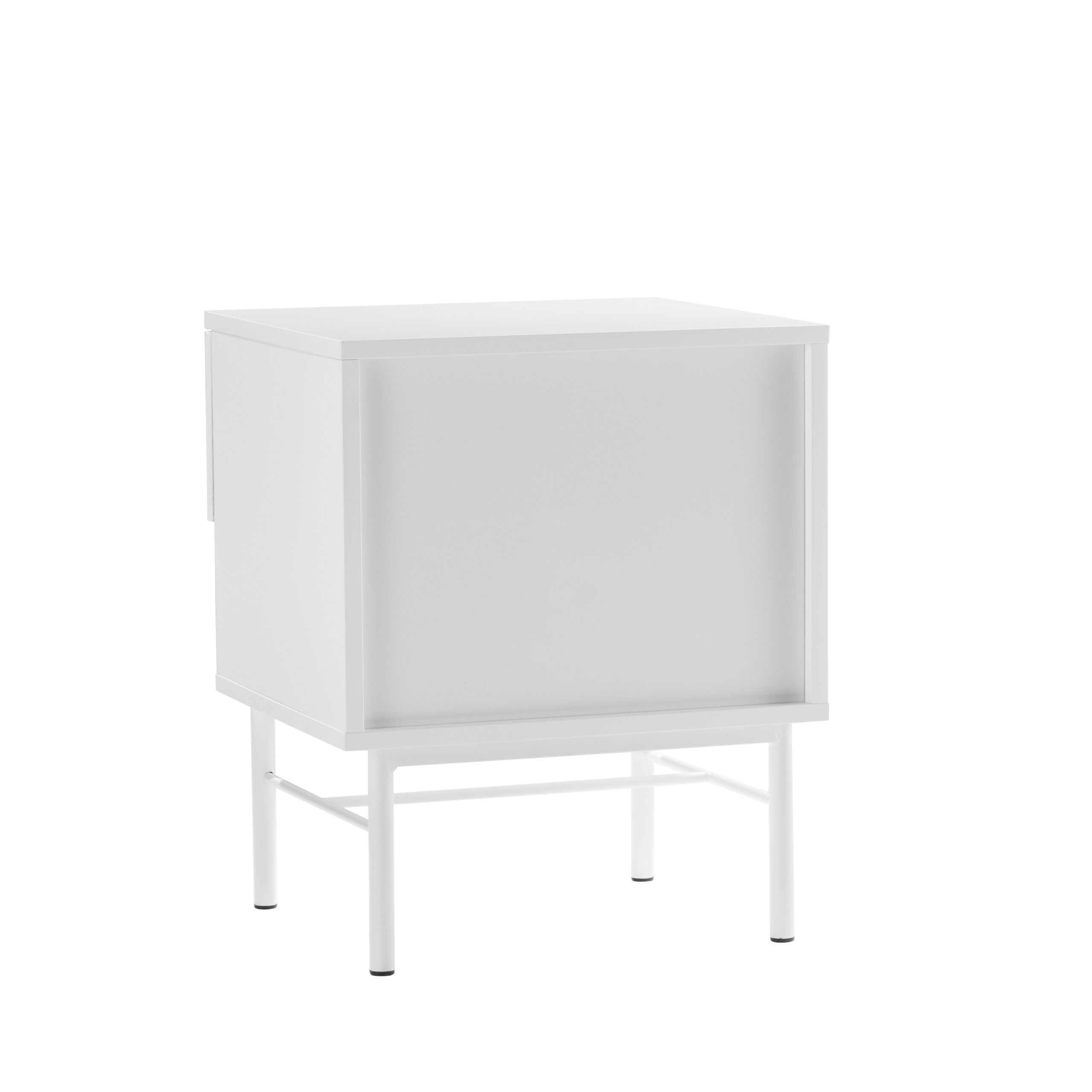 Elegante y práctica, nuestra mesa de noche Sequence cuenta con un acabado en melamina blanca de alta calidad y patas de metal, ofreciendo un diseño contemporáneo que combina a la perfección con cualquier estilo de habitación, asegurando funcionalidad y durabilidad.