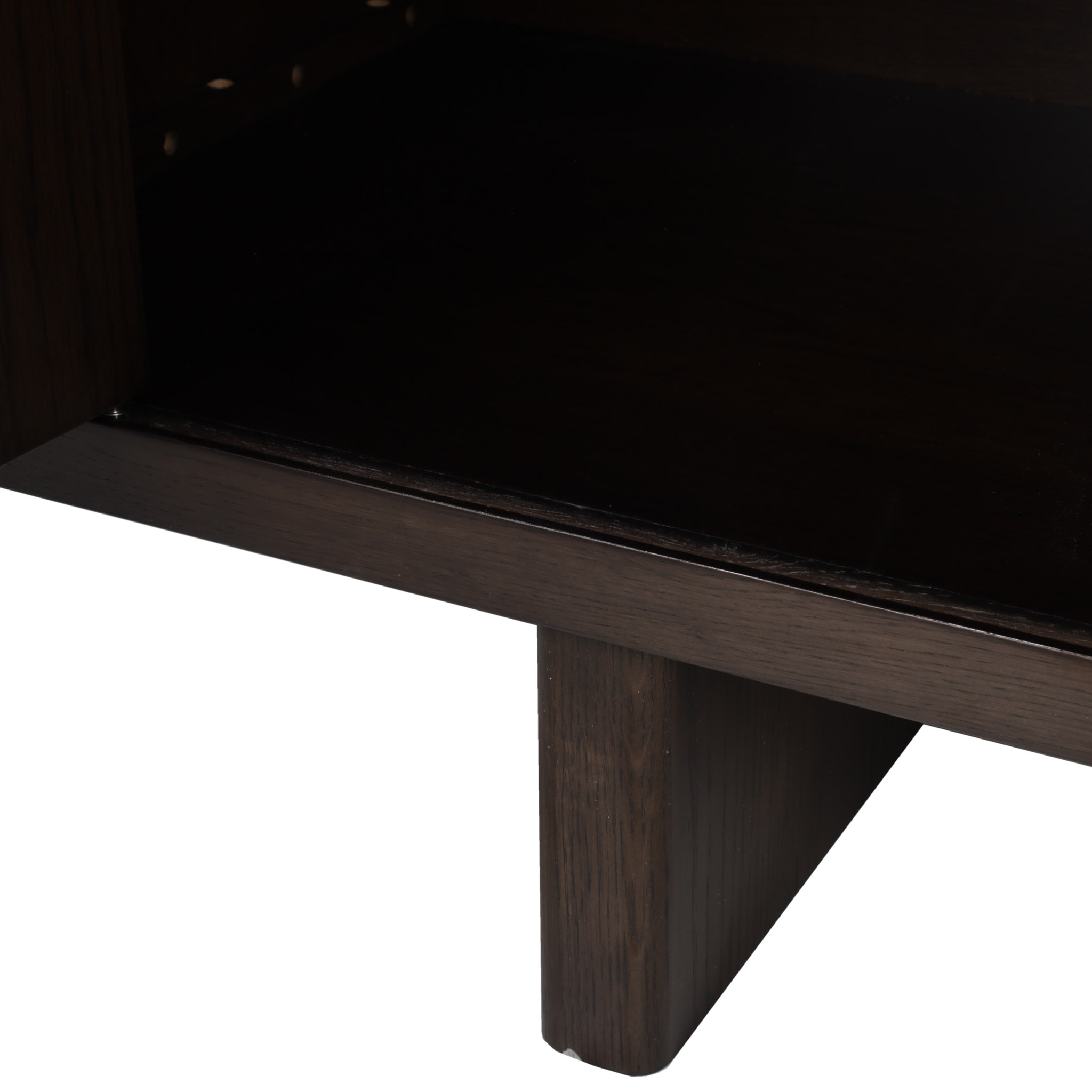 Este modelo de madera en acabado chocolate oscuro destaca por su elegancia sobria. Su estructura baja y resistente es ideal para salas modernas que buscan un equilibrio entre diseño y utilidad.
