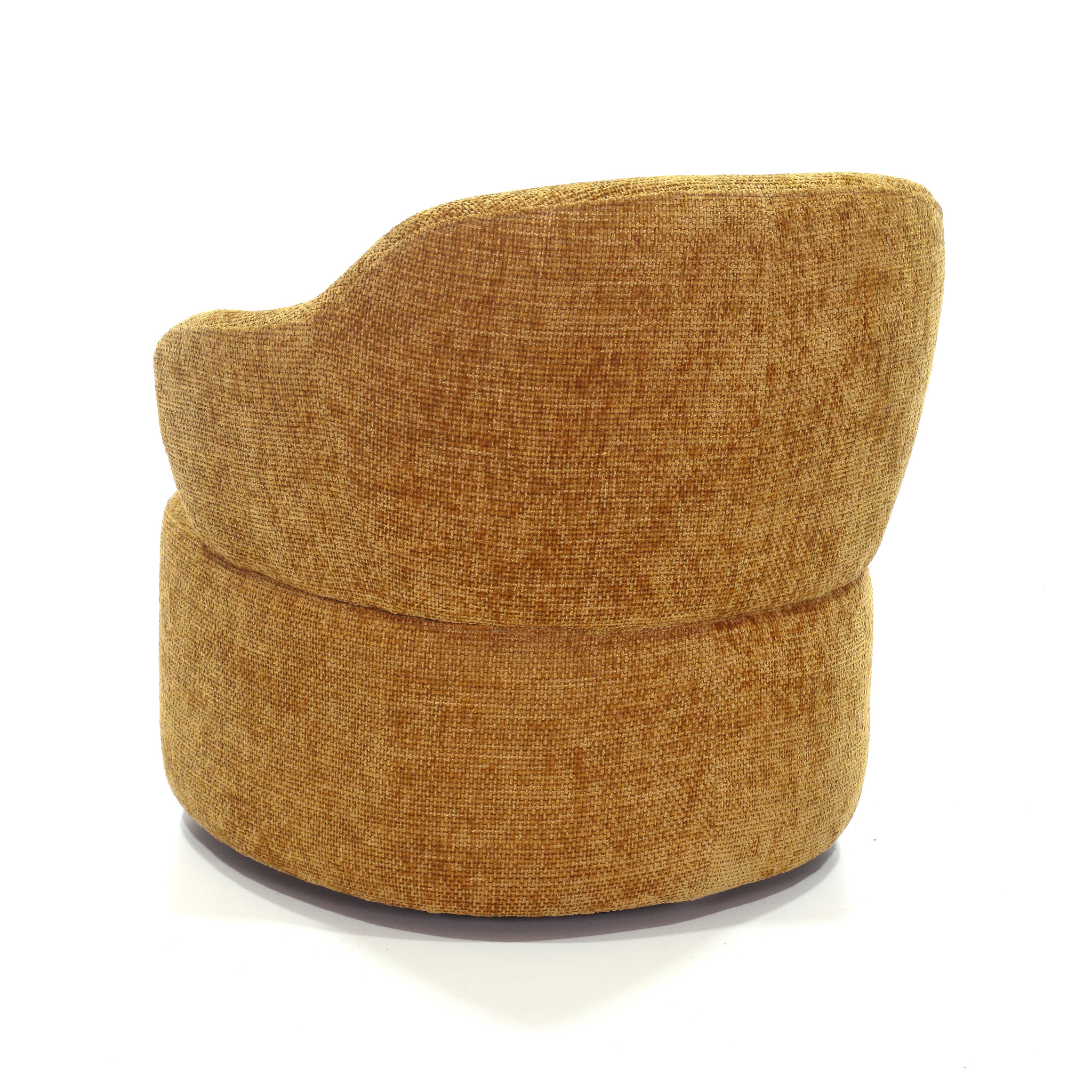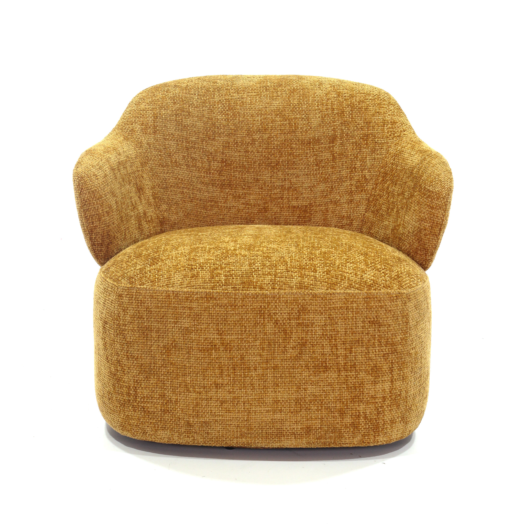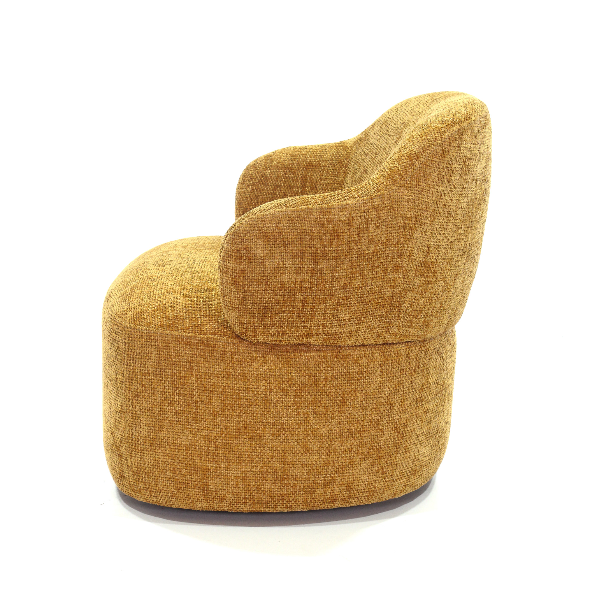 Poltrona giratoria tapizada en tela de alta calidad en color mostaza, diseñada para ofrecer el máximo confort y estilo. Su diseño elegante y contemporáneo se adapta perfectamente a cualquier sala de estar o rincón de lectura, proporcionando un asiento cómodo y acogedor. Ideal para añadir un toque de sofisticación y modernidad a tu hogar.