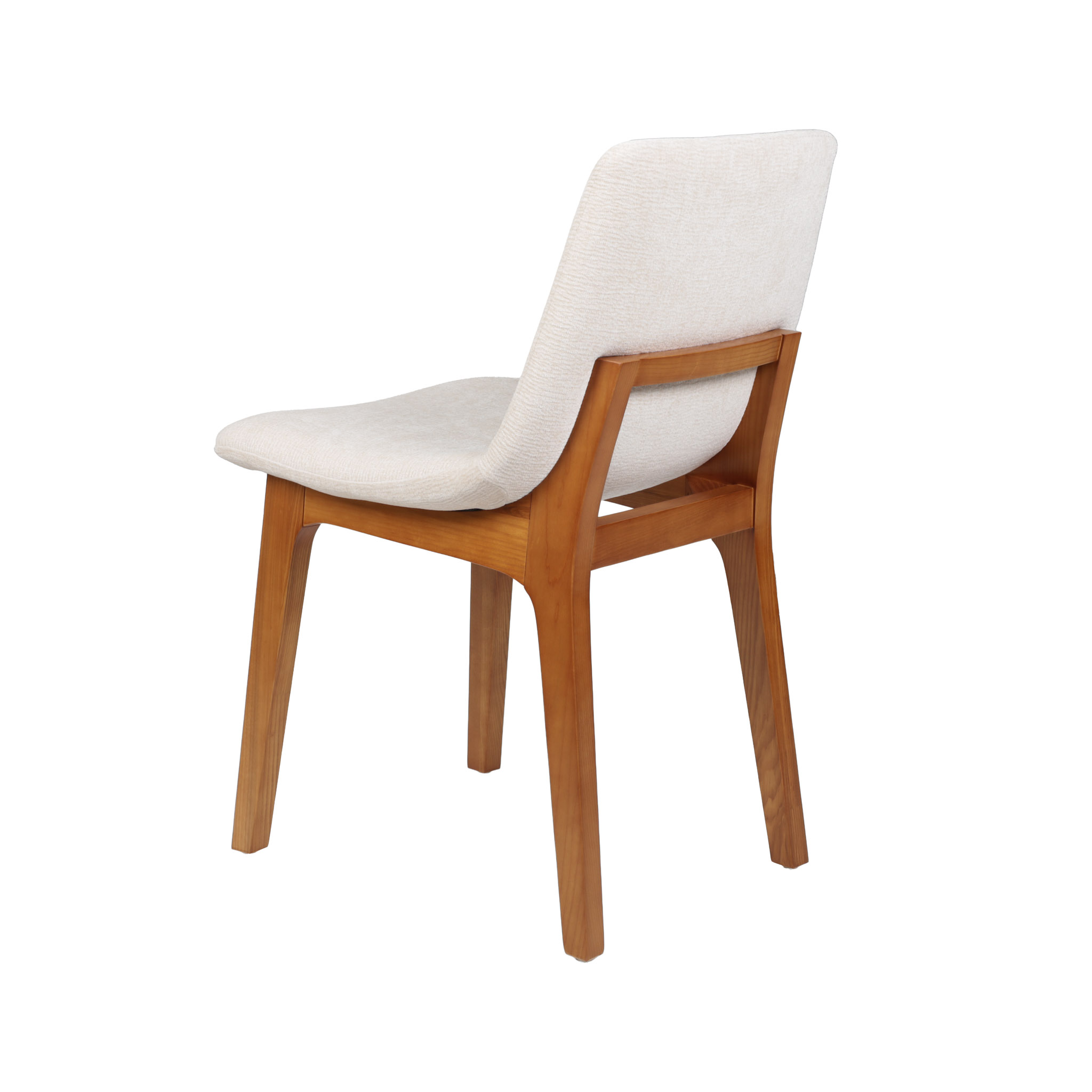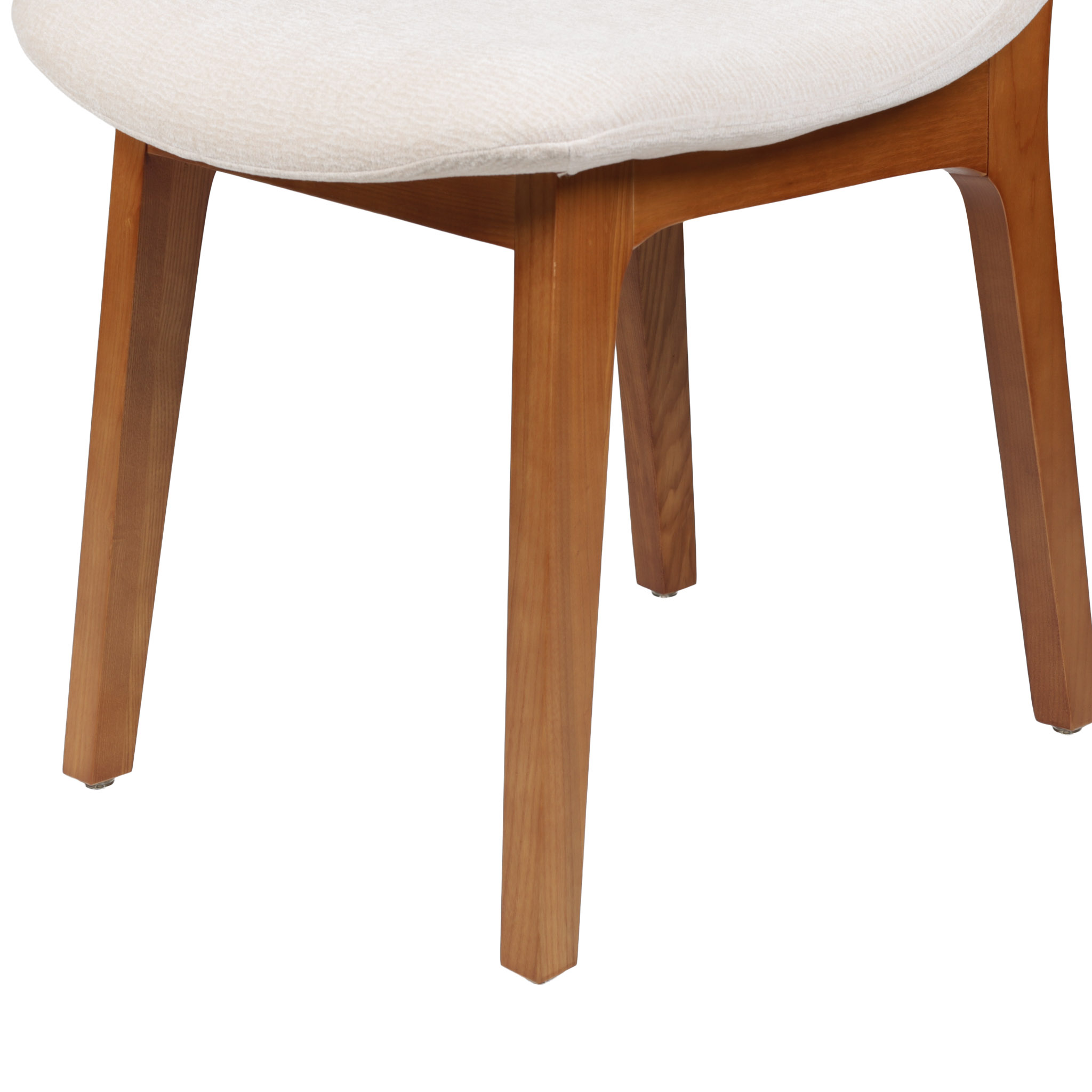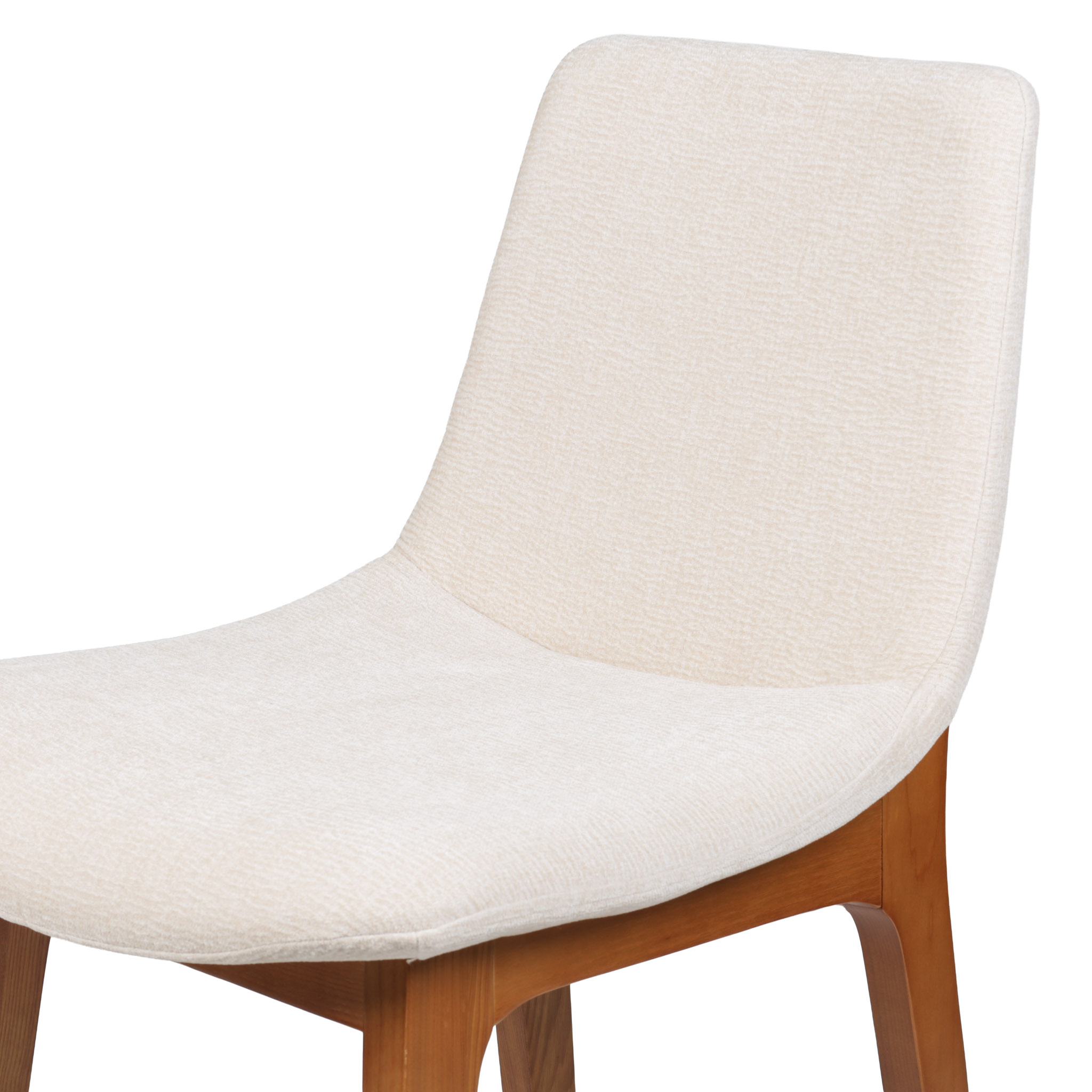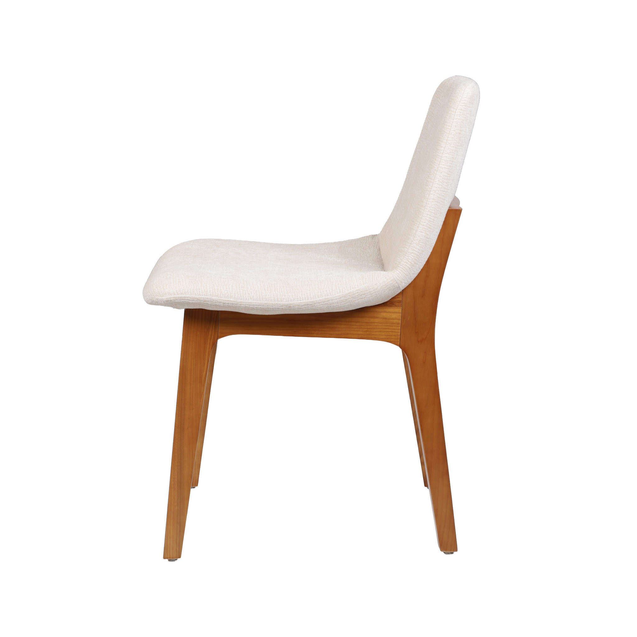 Silla tapizada en tono crema, y patas de madera con acabado chocolate.