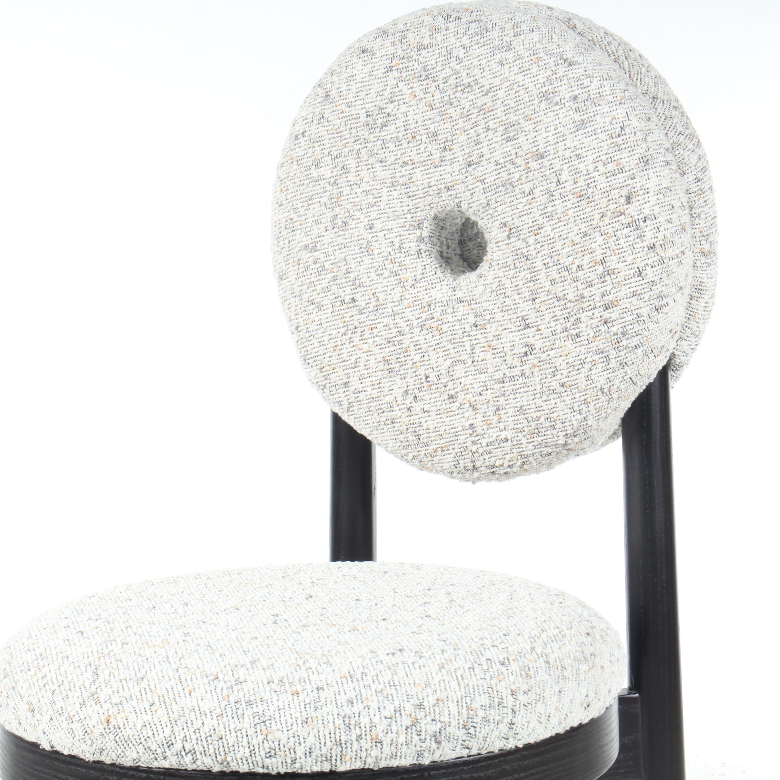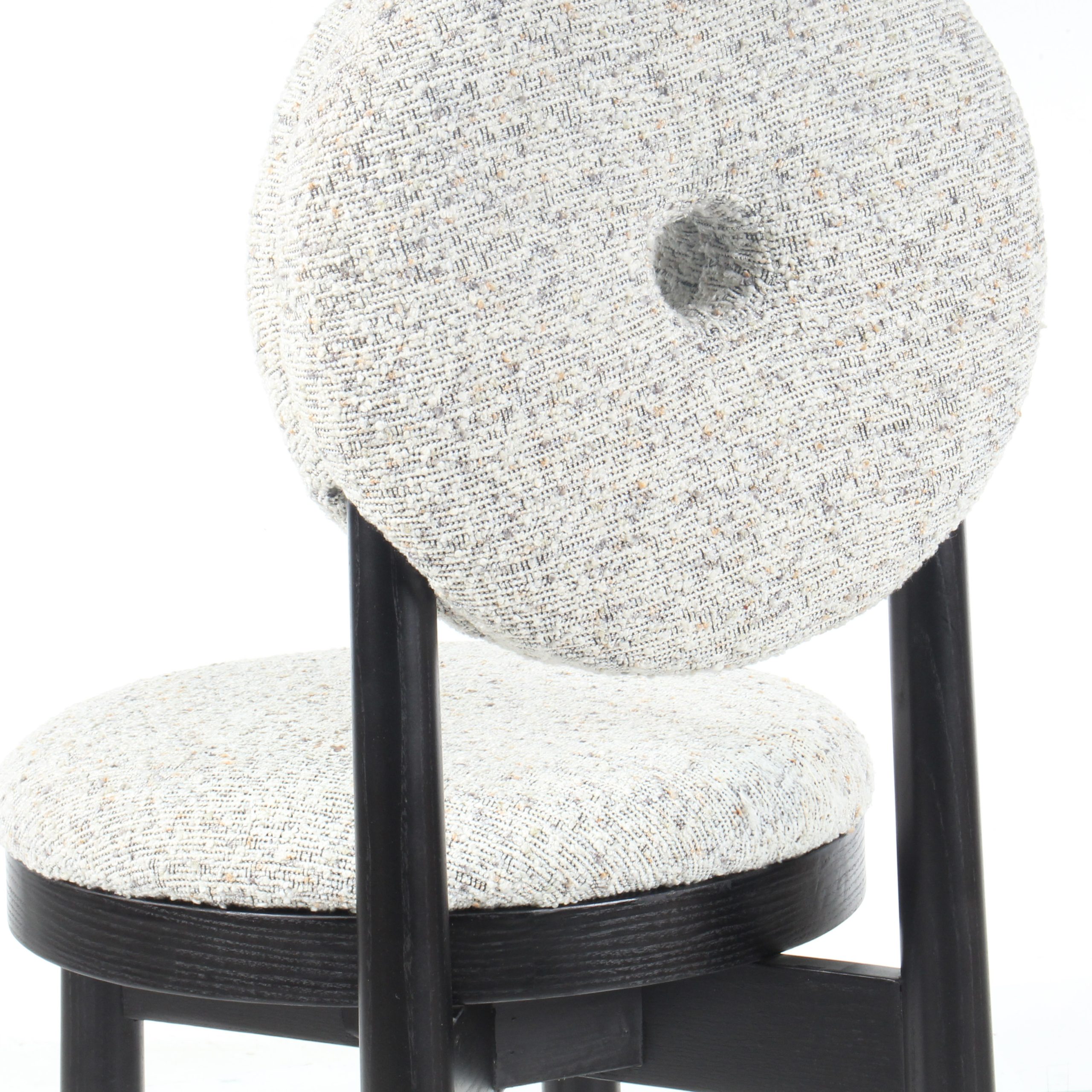 Esta elegante silla de comedor del modelo Donut combina un diseño moderno con comodidad. Su tapizado en tela ofrece suavidad y estilo, mientras que las patas de madera negra crean un contraste sofisticado, aportando un toque contemporáneo. Perfecta para quienes buscan una pieza funcional y estilizada que se integre fácilmente en comedores modernos o minimalistas.