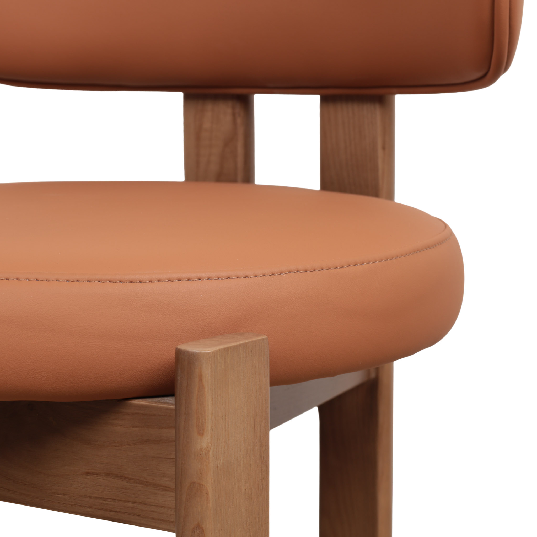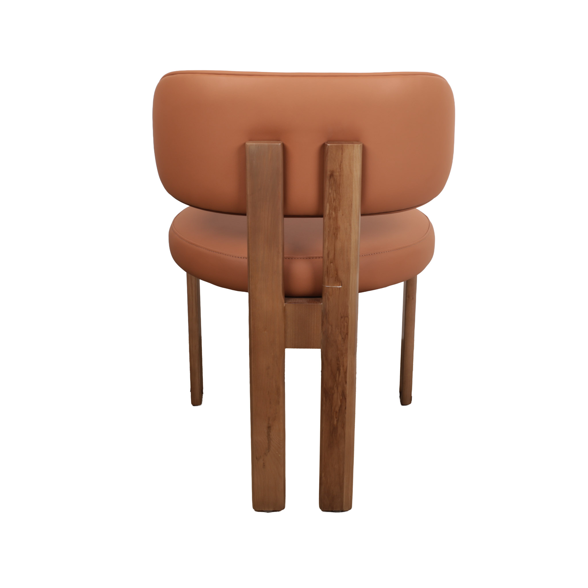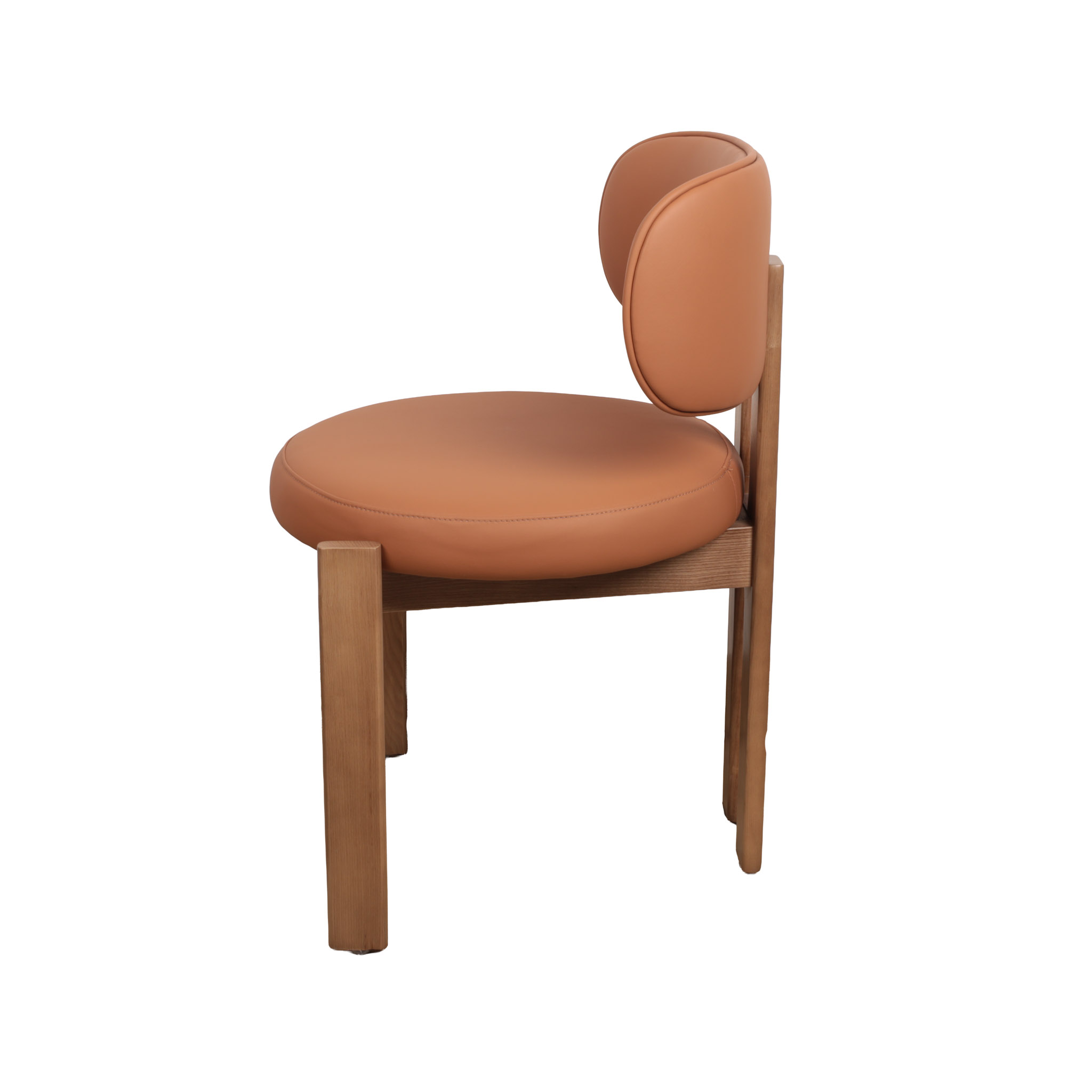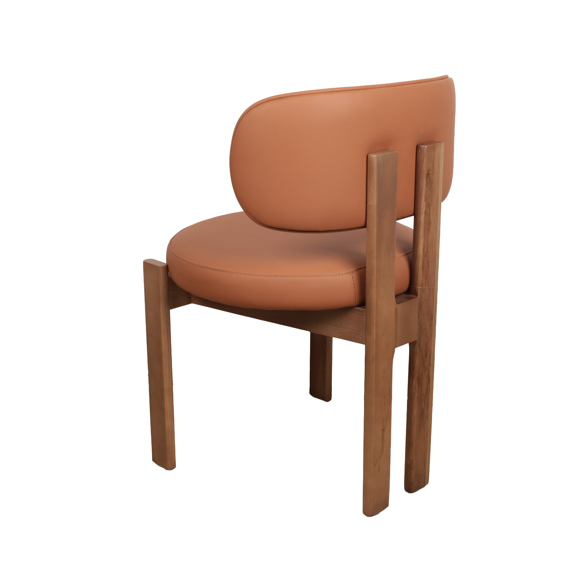 Con un diseño contemporáneo y líneas suaves, la silla Gia en cuerina terracota aporta calidez y personalidad a cualquier comedor. Sus patas de madera en tono almendra acentúan su estilo natural, creando un contraste elegante y acogedor.