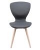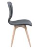 Silla de comedor de tela tono gris con patas de madera natural en tono claro.