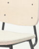 La silla de comedor modelo Yas combina elegancia y modernidad. Su tapizado en tela crema ofrece comodidad y estilo, mientras que el respaldo en madera natural añade un toque cálido y orgánico. Las patas de metal negro proporcionan un contraste contemporáneo y sofisticado, haciendo de esta silla una opción ideal para comedores con un diseño moderno y funcional.