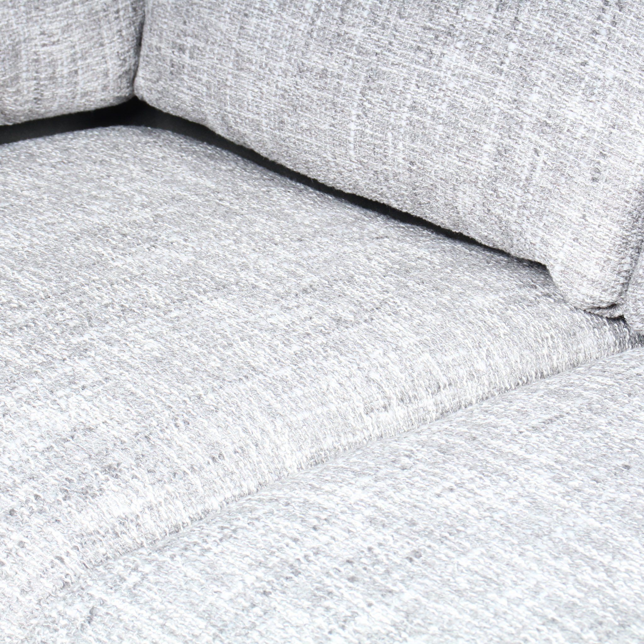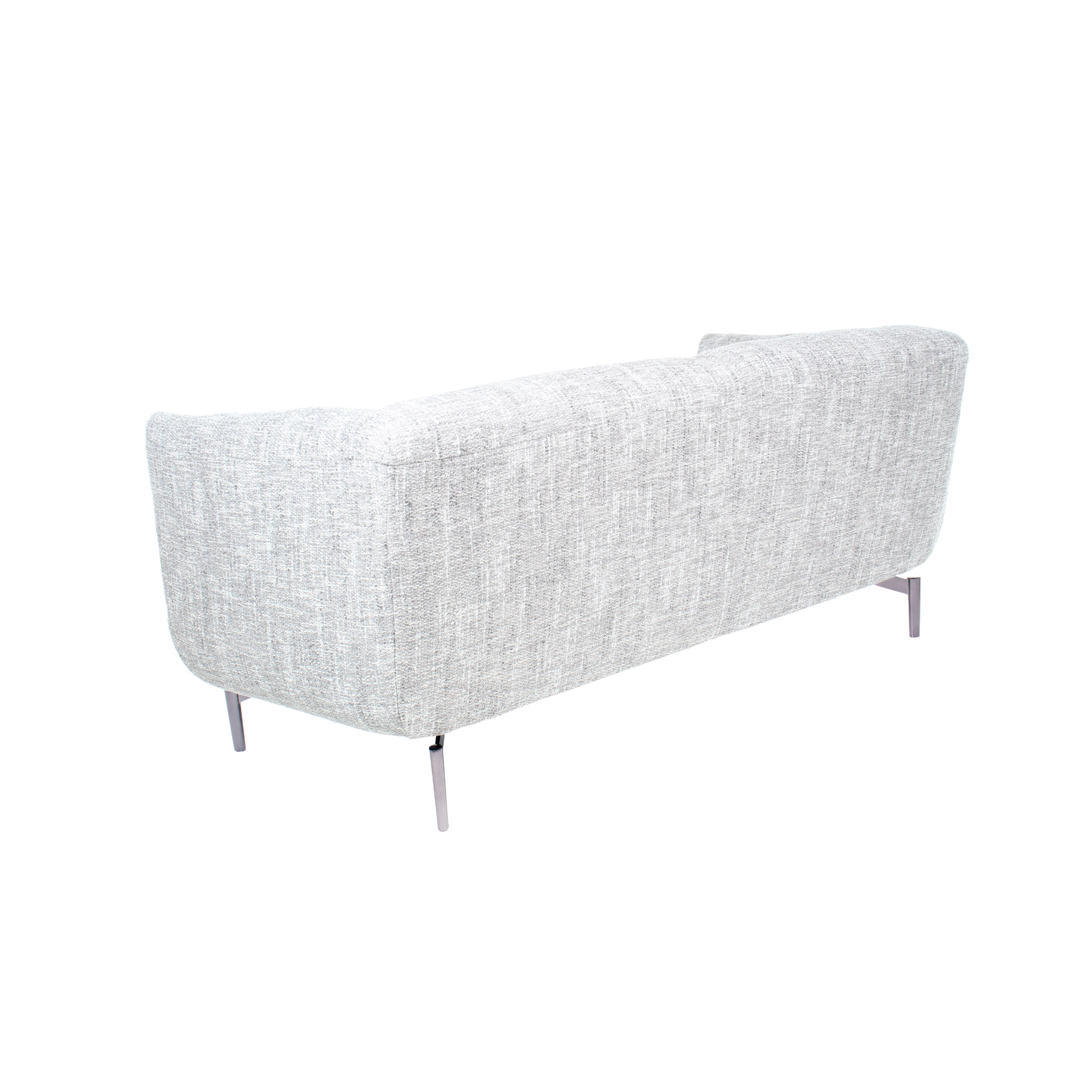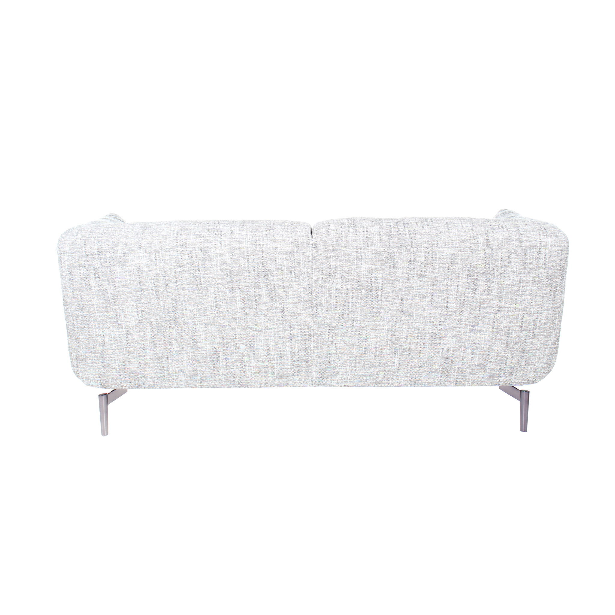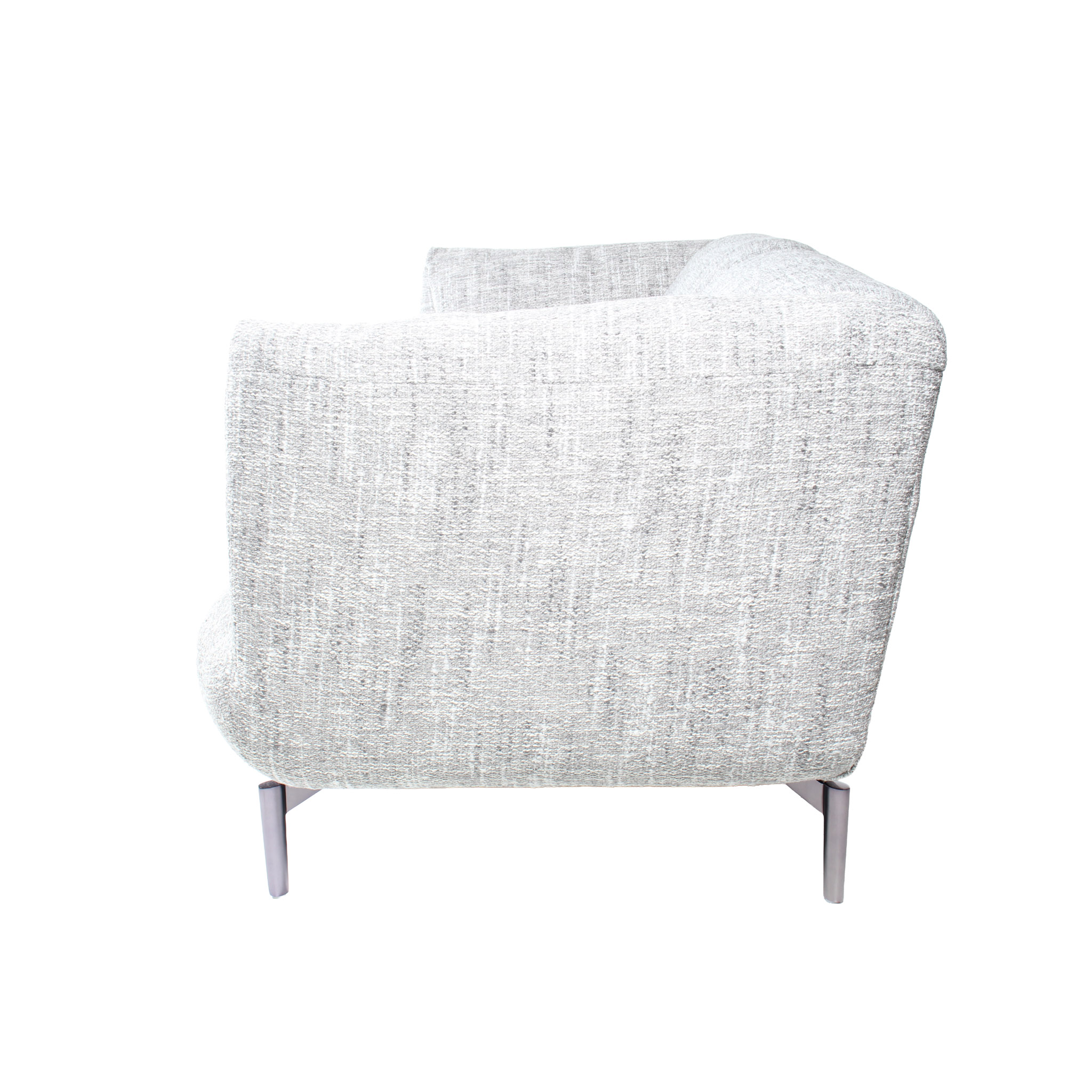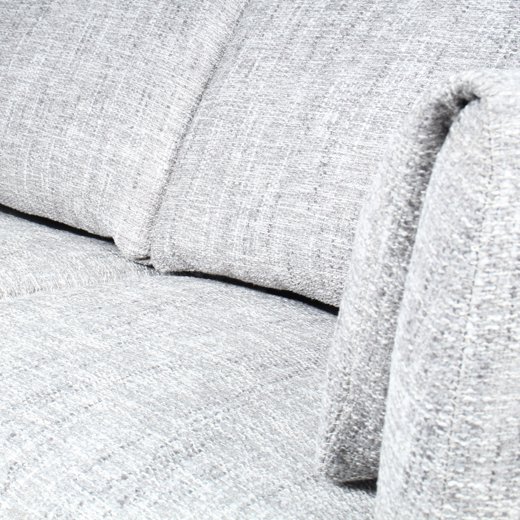 El sofá de dos puestos en tela gris con hilos blancos destaca por su diseño sobrio y contemporáneo. Su tonalidad neutra facilita la combinación con diferentes estilos de decoración. Una pieza práctica y elegante, ideal para crear ambientes modernos y acogedores.