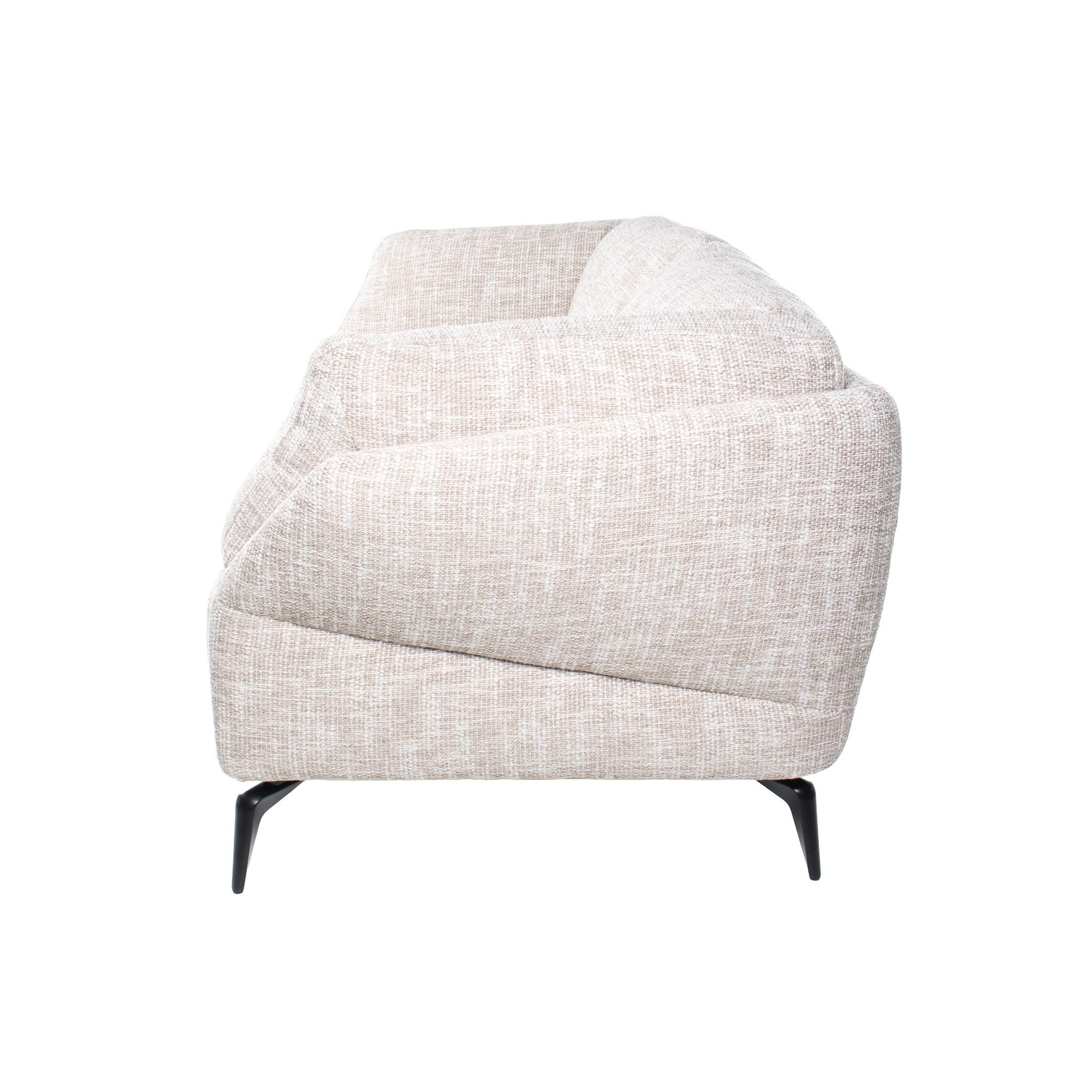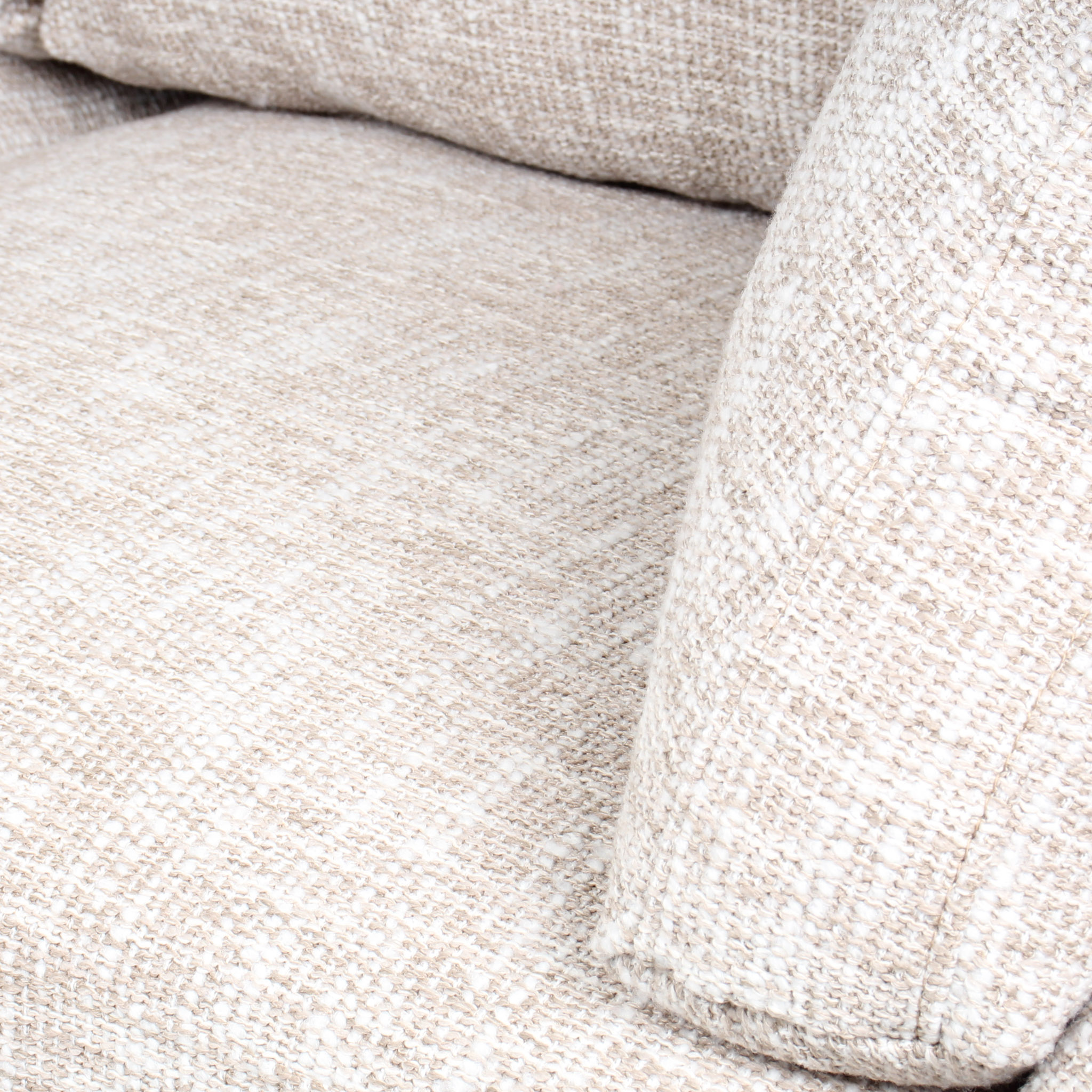 Una pieza que juega con la textura: el tono crema se complementa con detalles en hilos blancos, generando un acabado refinado y moderno. Perfecto para quienes buscan un sofá compacto con un diseño distintivo.