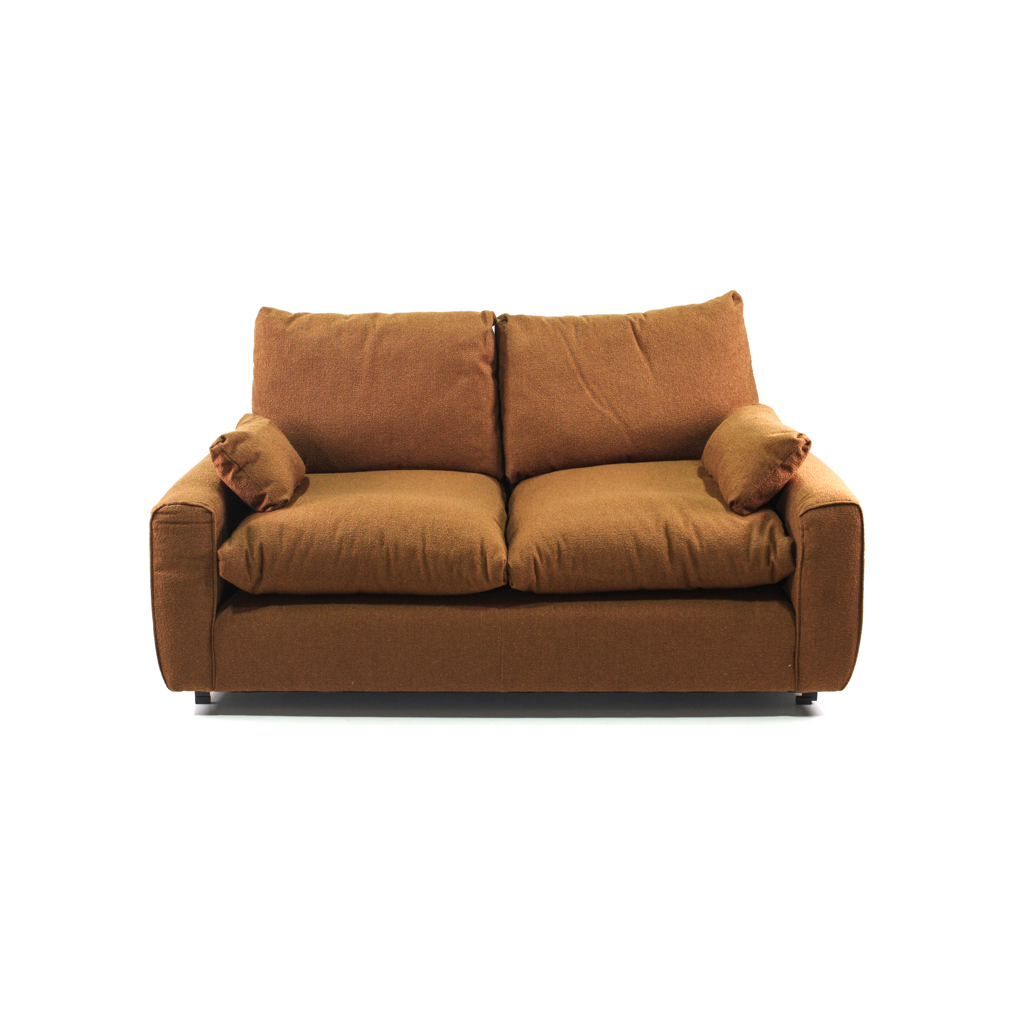 Sofá de dos puestos modelo Steeton, tapizado en elegante tela marrón, complementado con patas de madera. Este diseño contemporáneo es ideal para cualquier sala de estar, ofreciendo un equilibrio perfecto entre estilo y comodidad.