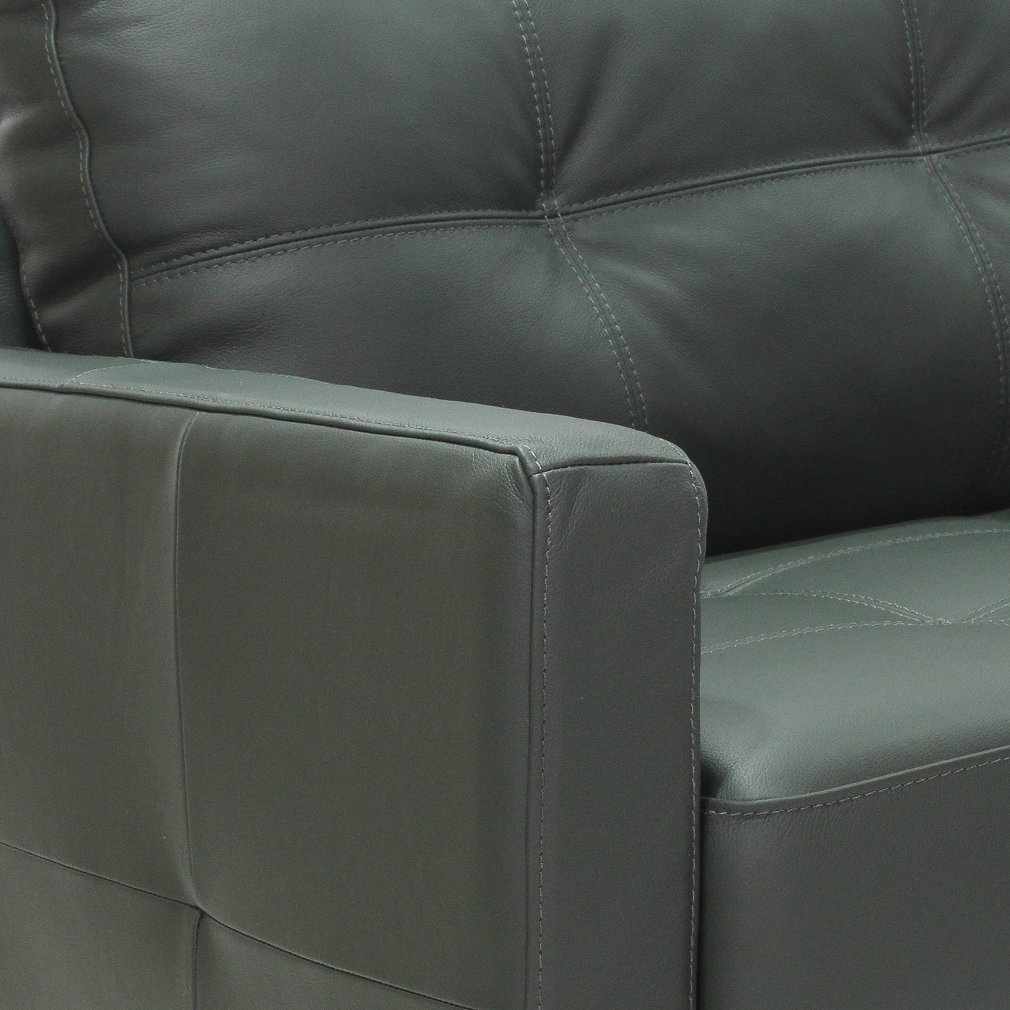 Este sofá de dos puestos en color caqui ofrece un equilibrio ideal entre estilo contemporáneo y confort, con su suave tapicería de cuero que añade sofisticación a cualquier espacio.