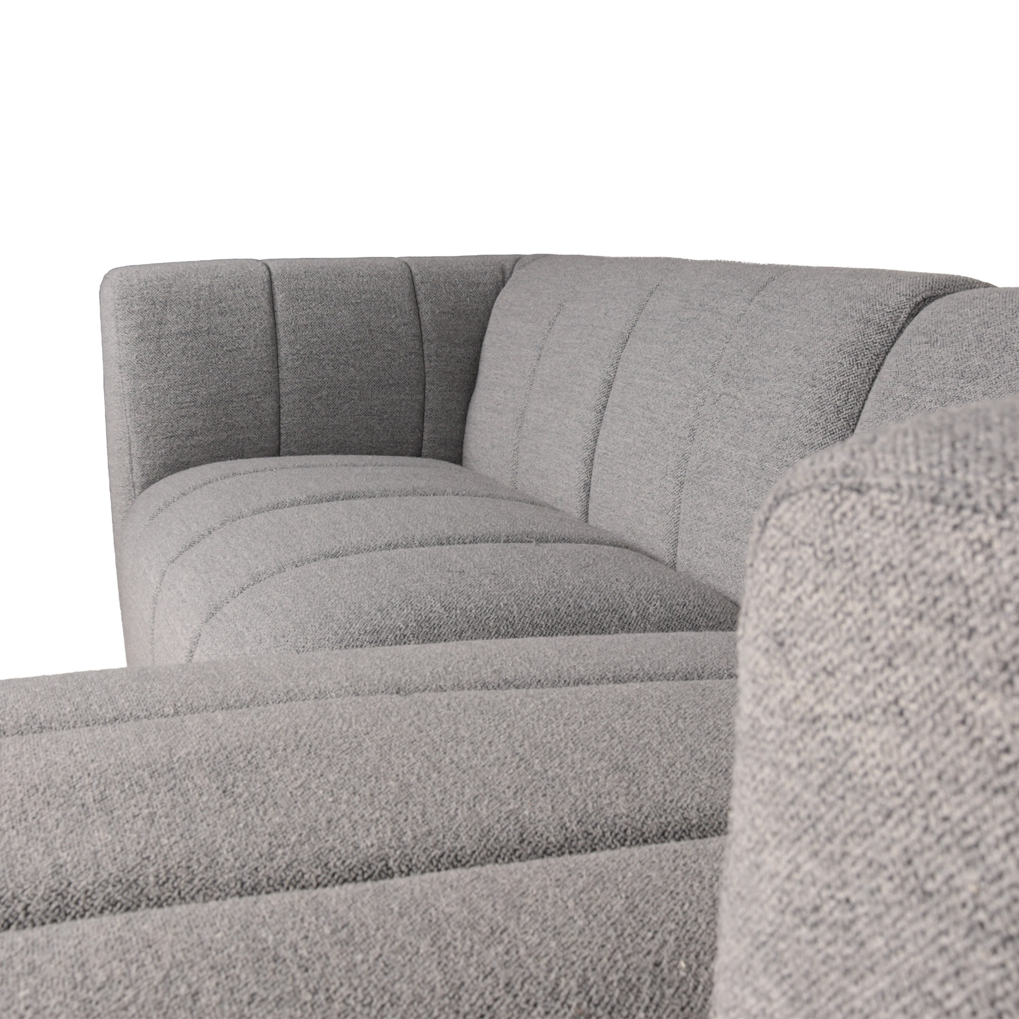 Sofá seccional de tela en tono gris, con el chaise del lado derecho.