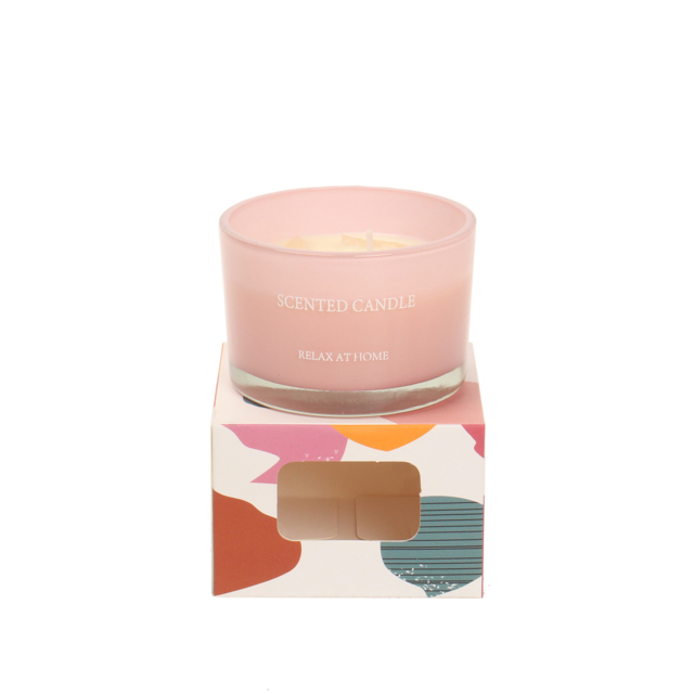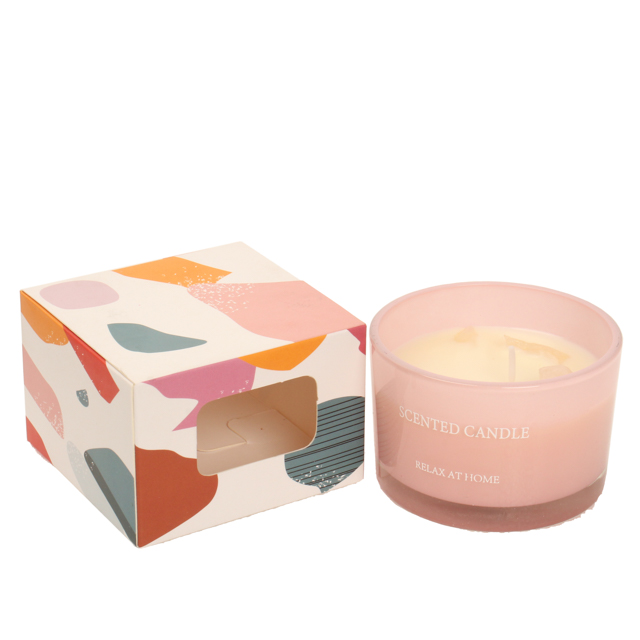 Vela aromática Tropical Orchard en frasco color rosado. Con una fragancia fresca y afrutada que evoca la esencia de un jardín tropical, esta vela aporta un toque vibrante y cálido a tu hogar, ideal para crear un ambiente acogedor y lleno de energía.